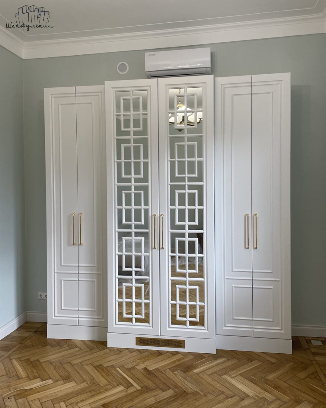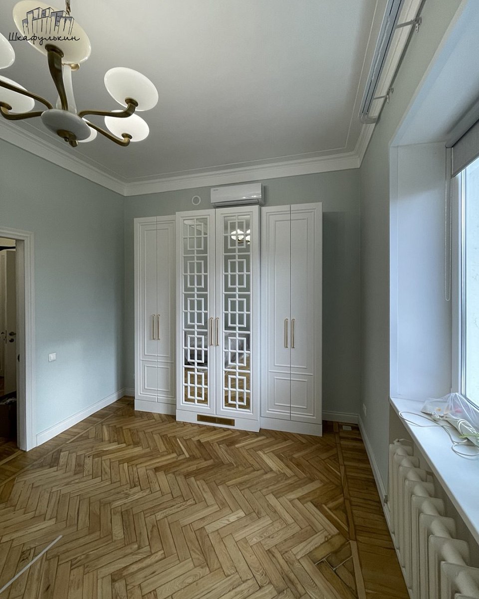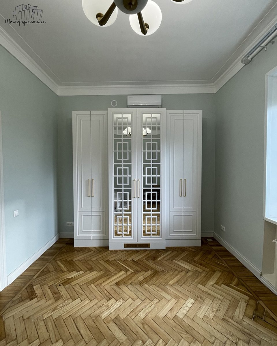 Фасады: МДФ 22 мм/RAL 9003 + вставка зеркало.