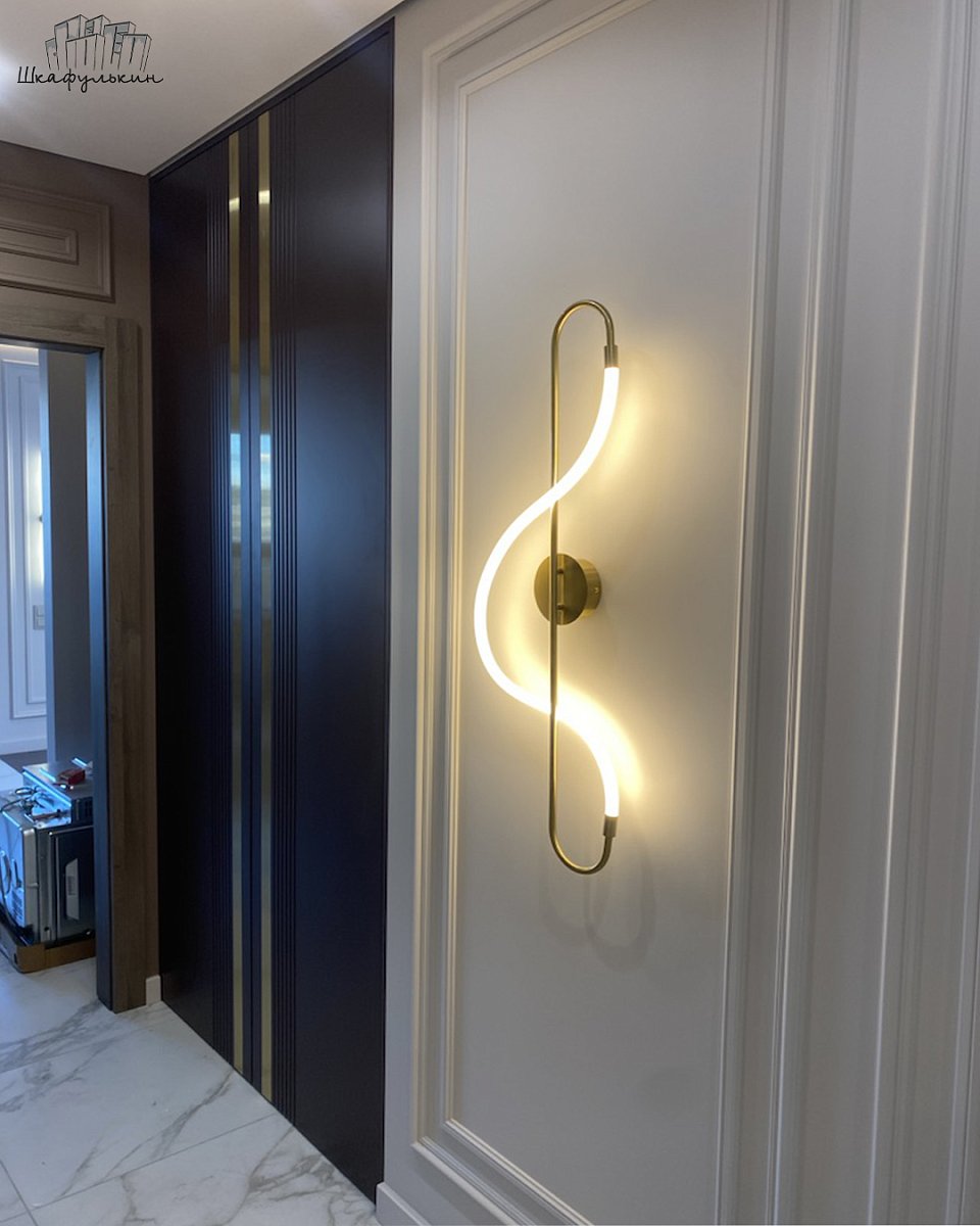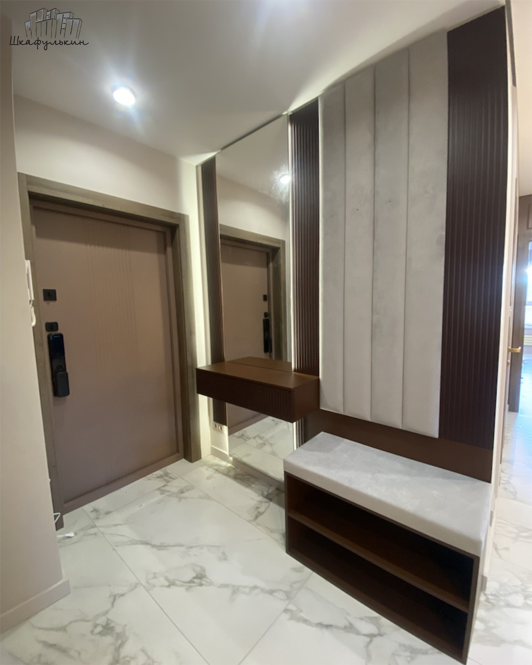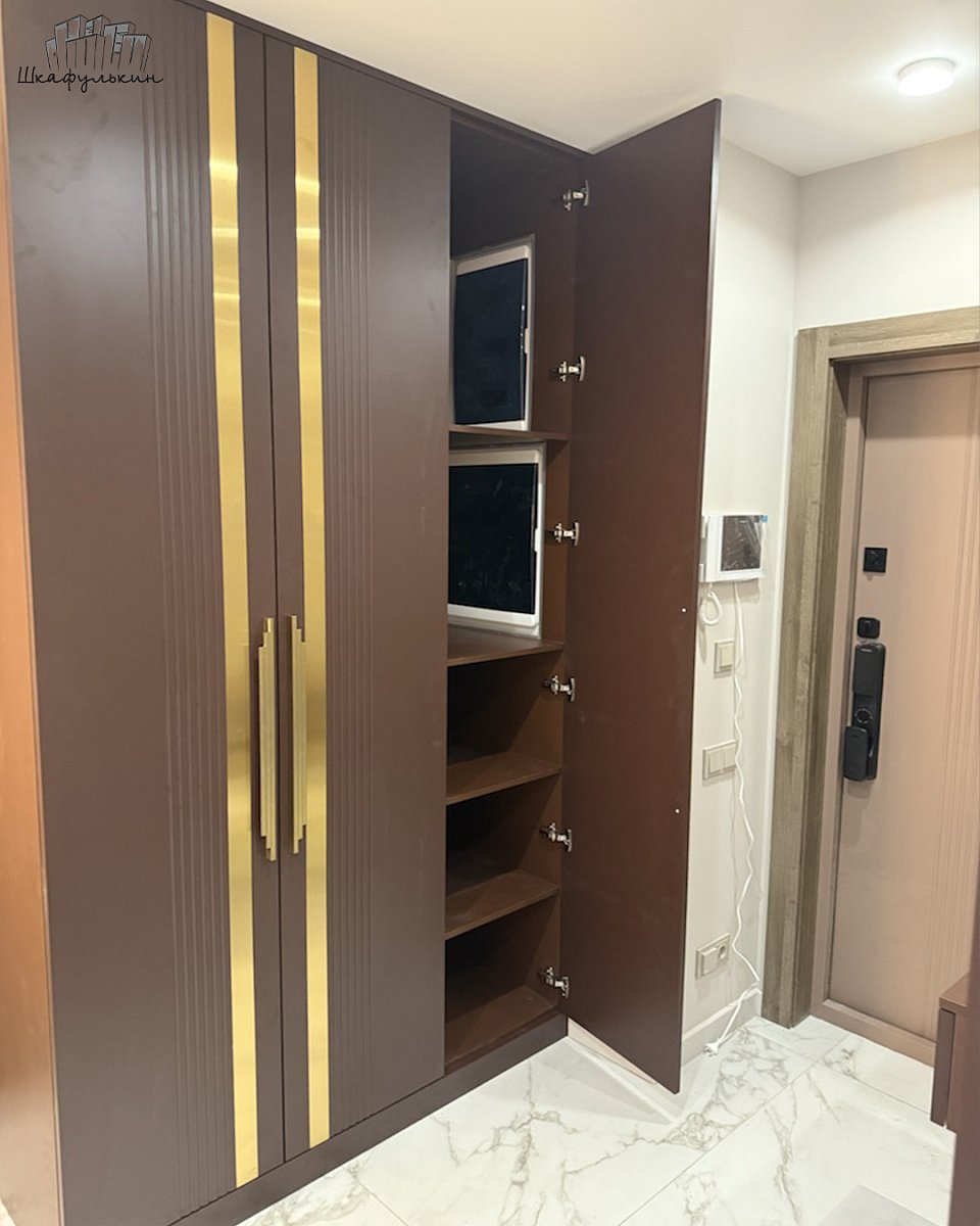 Фасады: МДФ 19 мм/NCS S 8010 Y50R, вставка латунь.