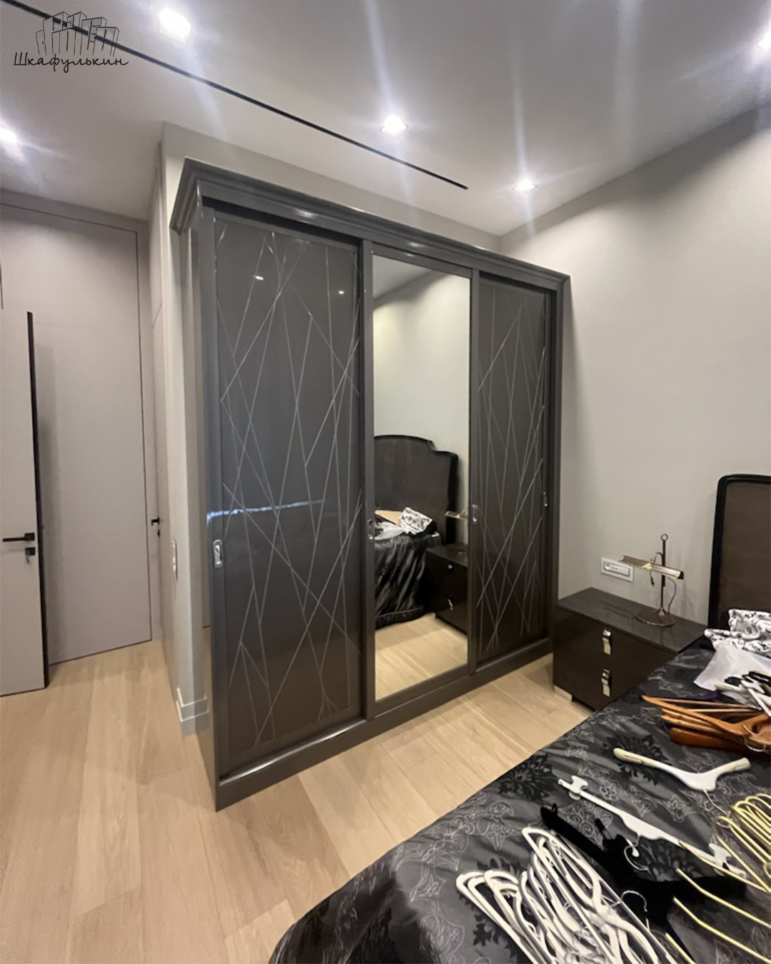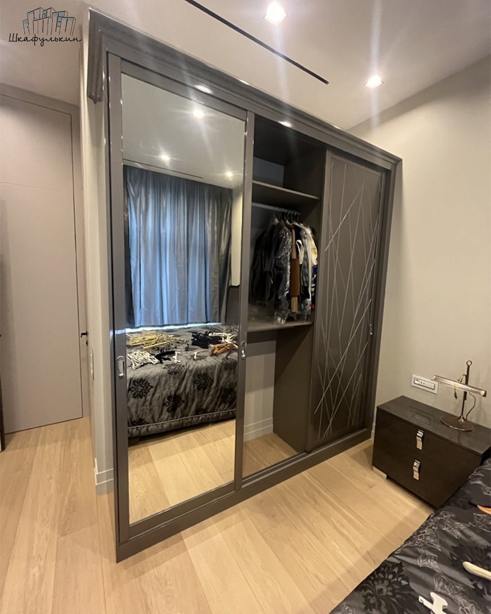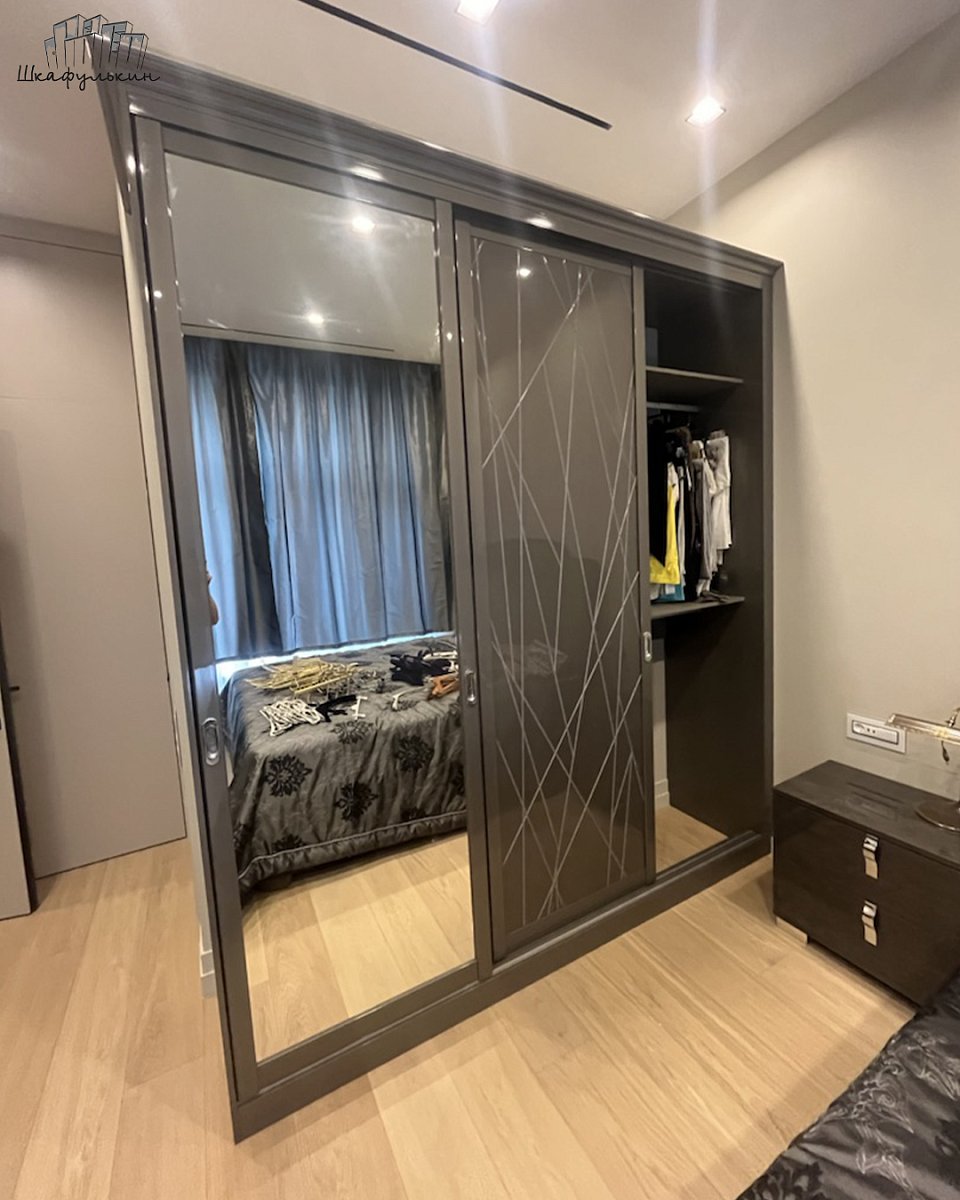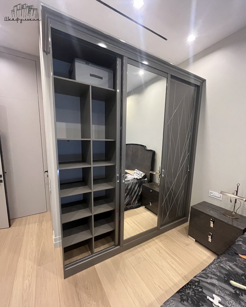 Двери-купе: HOLZ/RAL 9007, глянец, вставка стекло.
