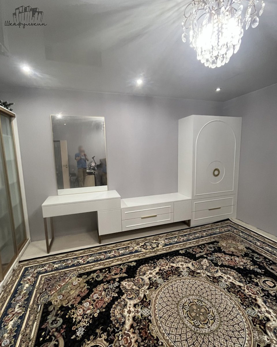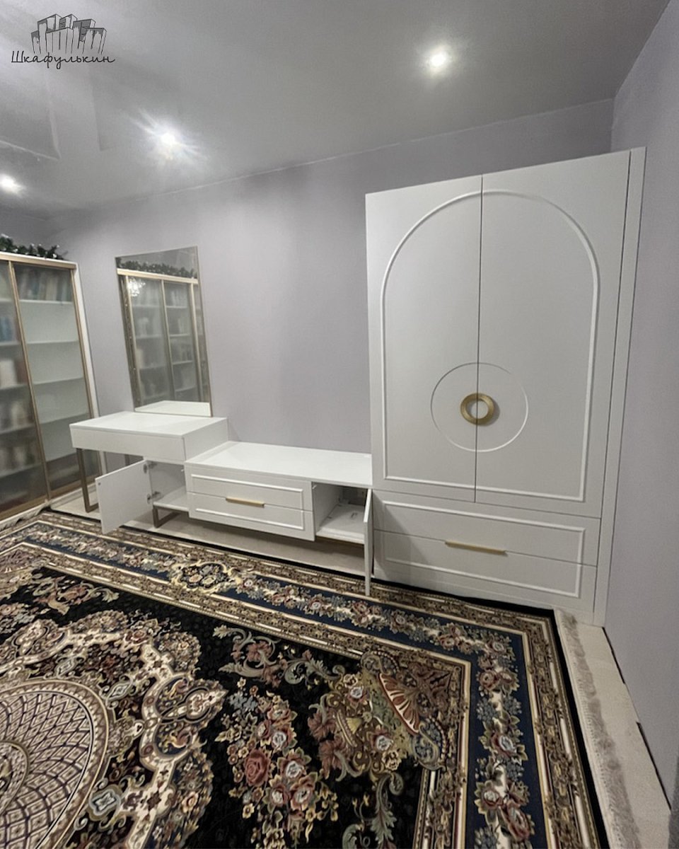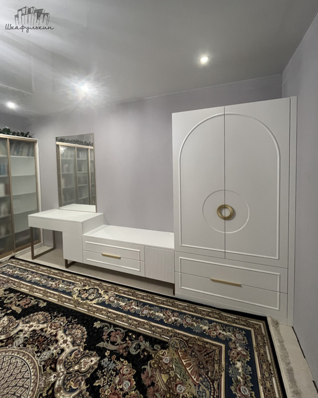 Фасады: МДФ 19 мм/RAL 9016, молдинг.
