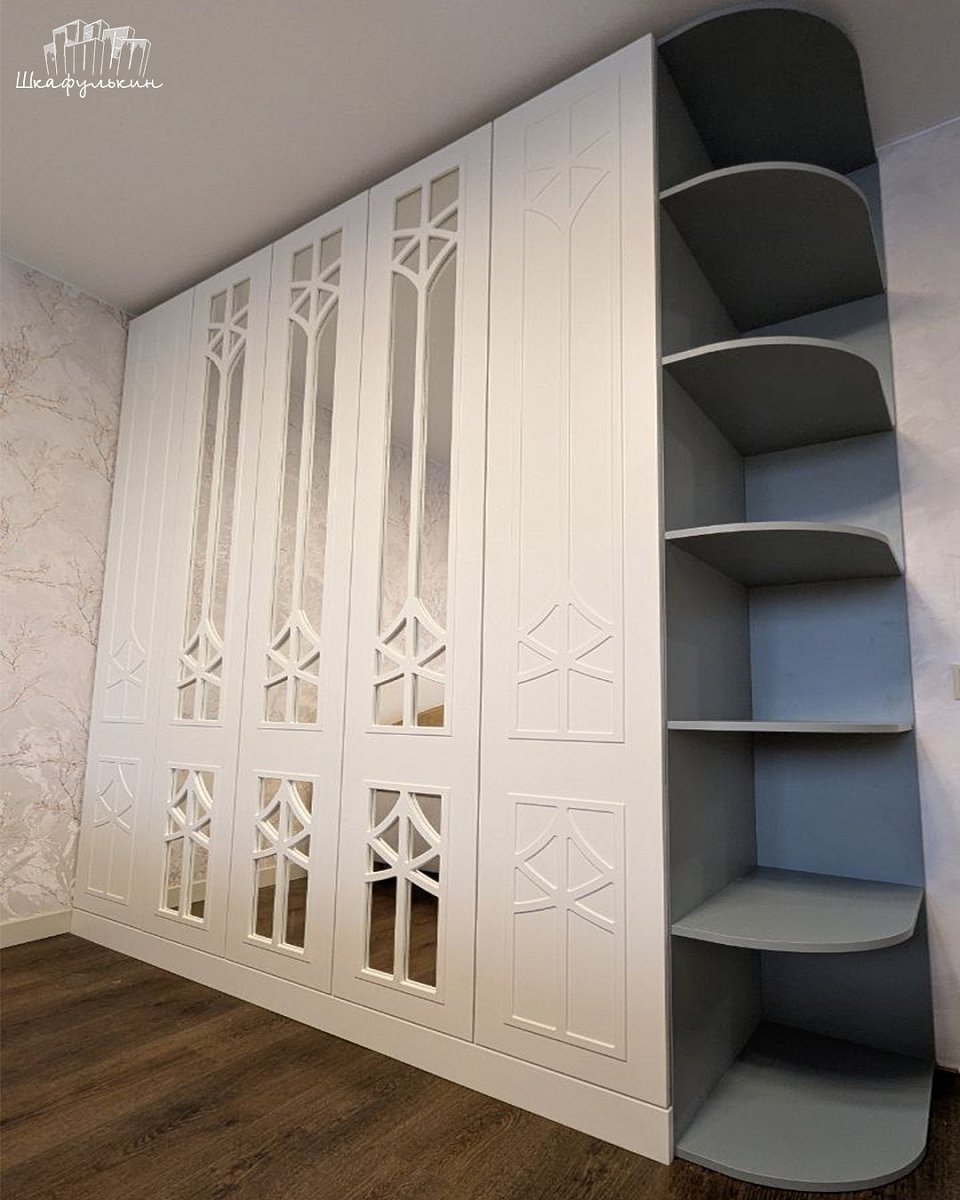 Фасады: МДФ 19 мм/NCS S 0502 G50Y, вставка зеркало.