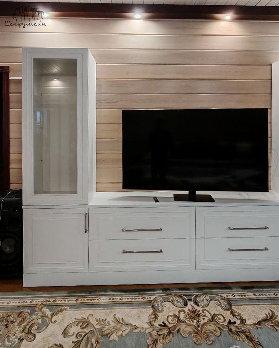 Фасады: МДФ 19 мм/RAL 9016, вставка стекло.