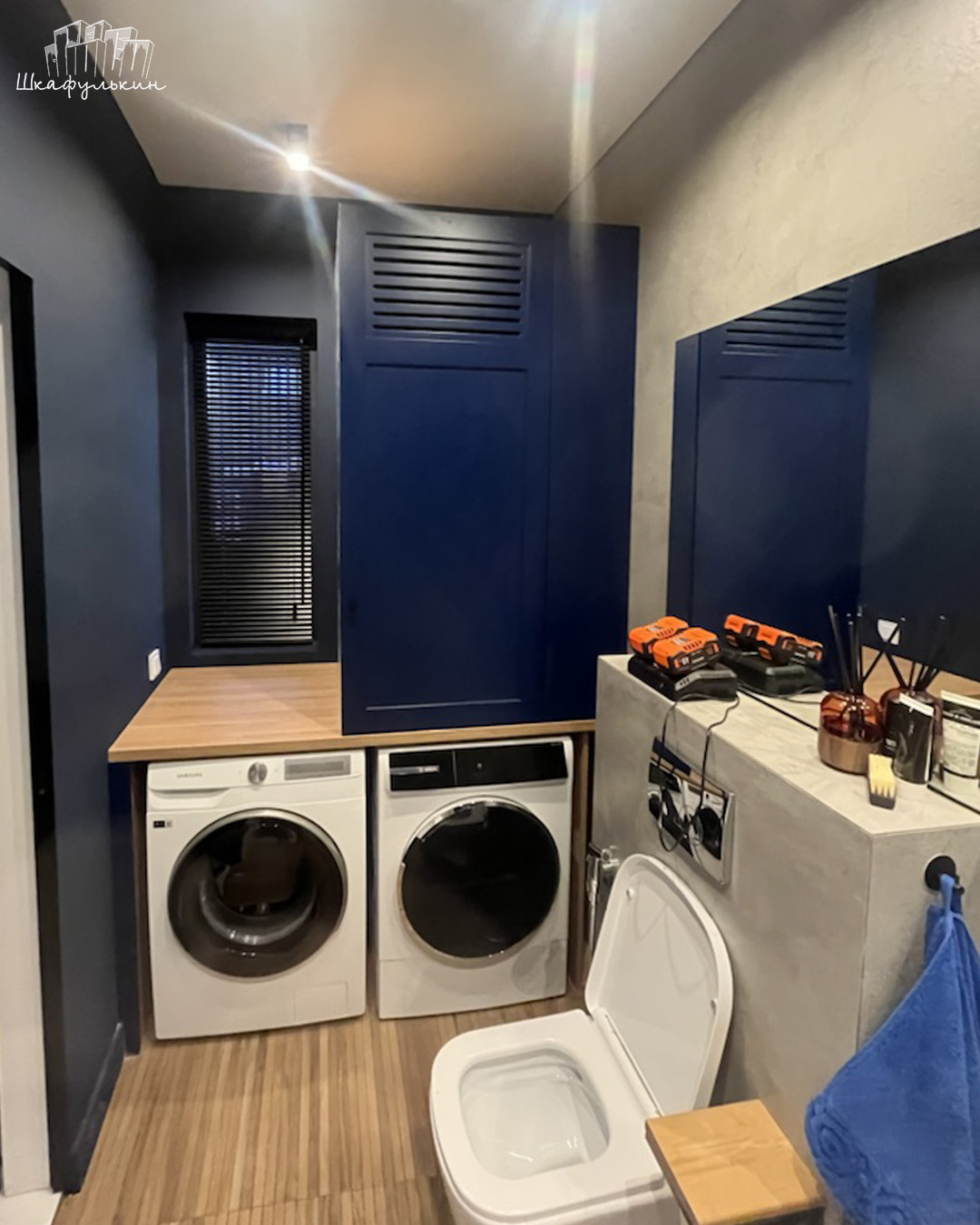 Корпус: ЛДСП Egger 16 мм/МДФ 16 мм/NCS S 7020 R80B.