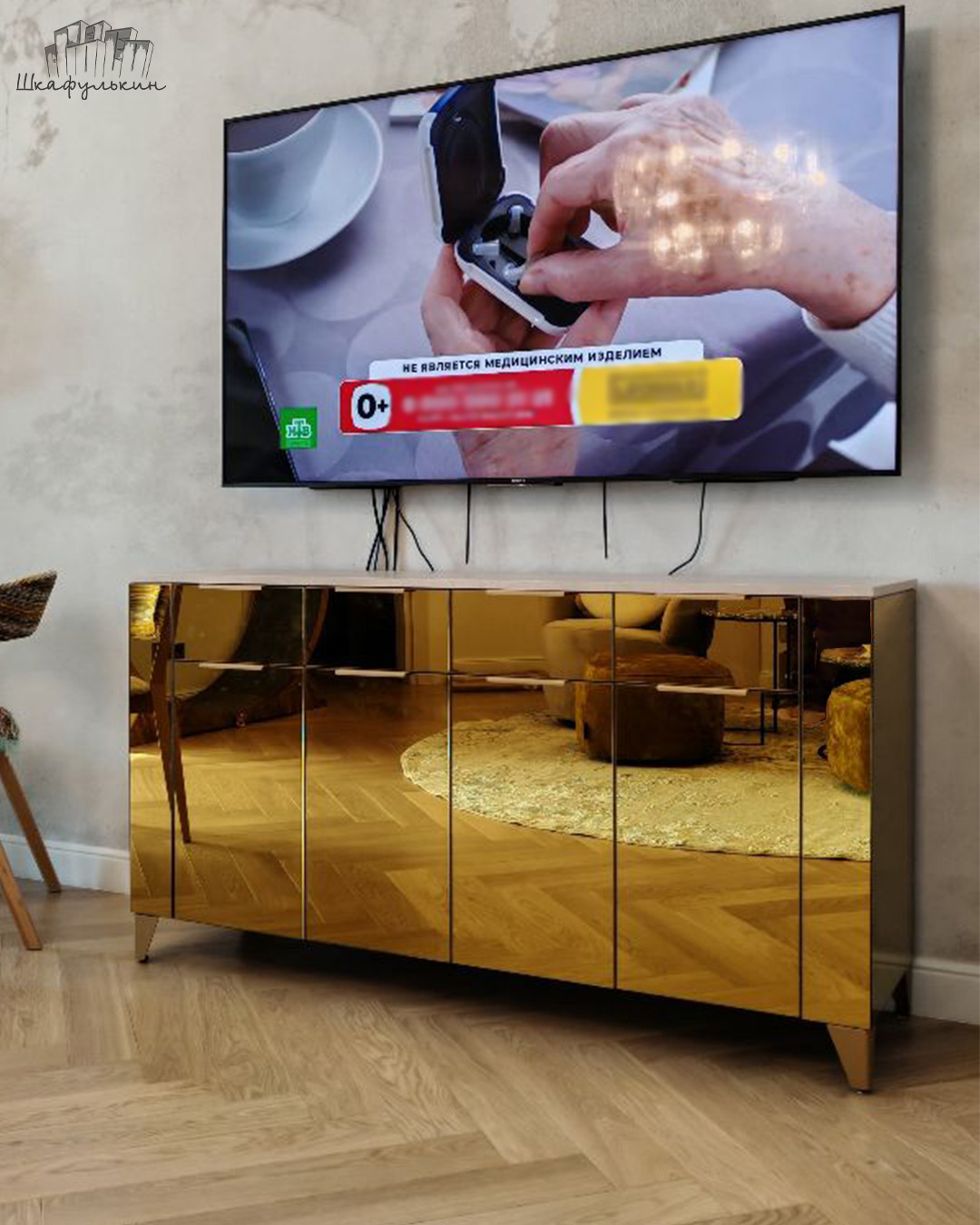 Фасады: ЛДСП Egger 16 мм + золото зеркало.