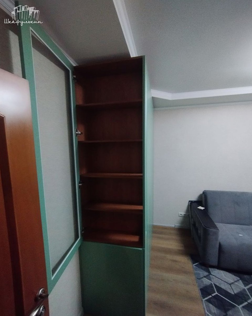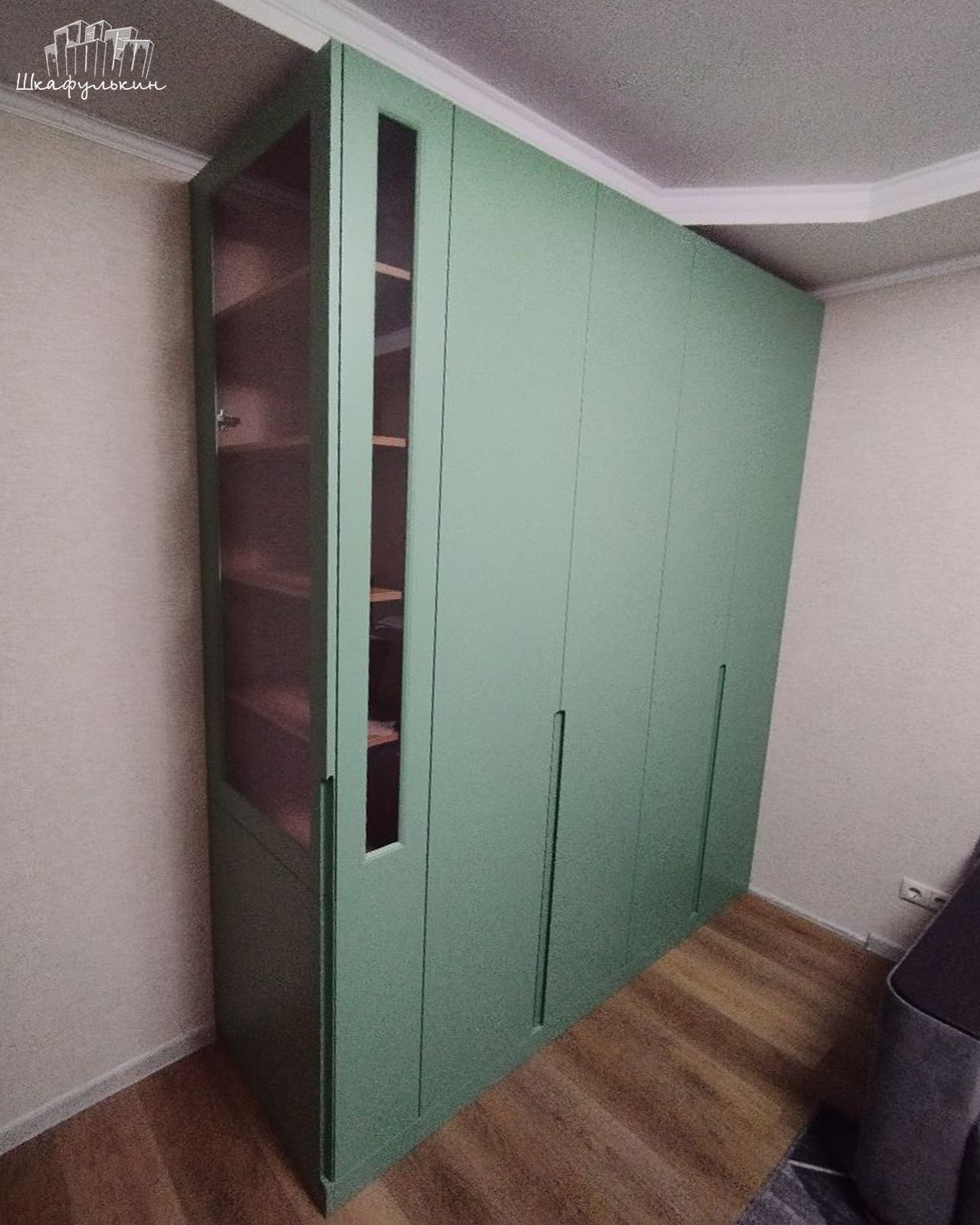 Фасады: МДФ 19 мм/RAL 6021, вставка стекло, двухсторонняя покраска.