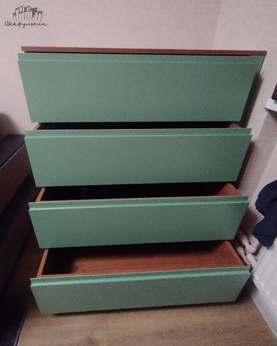 Фасады: МДФ 19 мм/RAL 6021, двухсторонняя покраска.