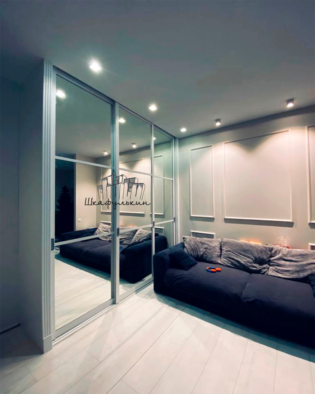 2 двери раздвижных, профиль – Модус MS-163, цвет – А00-Серебро;