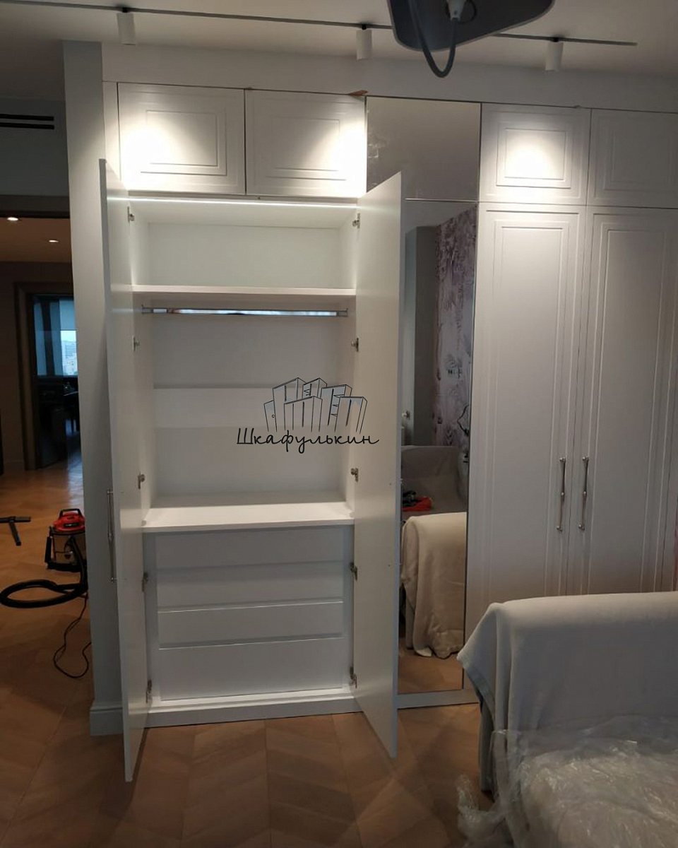 Фасады ящиков внутри шкафа - МДФ 19мм, с интегрированной ручкой, крашенные с 2х ст, цвет - RAL - 9003 матовый;