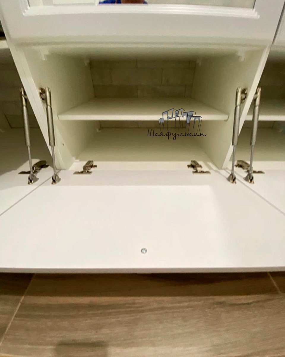 Бок правый, дно навесного шкафа, крыша тумбы - МДФ 19мм без фрезеровки, крашенные с 1й стороны, цвет - NCS S 1000-N матовый.