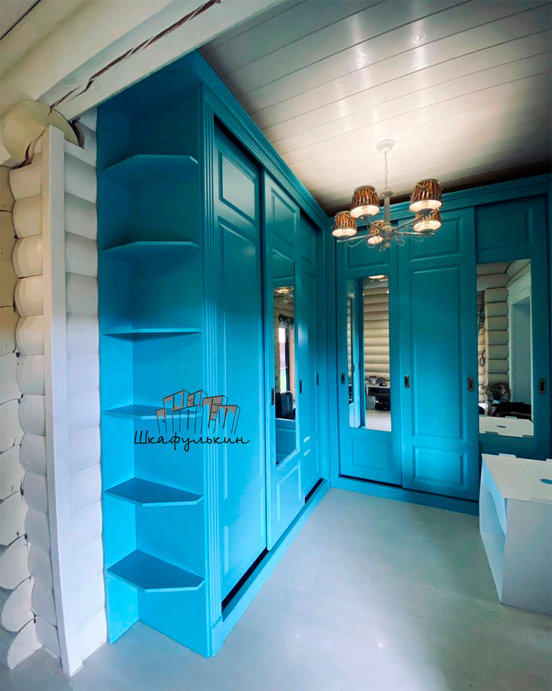 Двери купе - 3шт, Материал - МДФ 25мм, с фрезеровкой "Рим ", крашенные с 1й стороны, цвет - RAL 6034 мат;