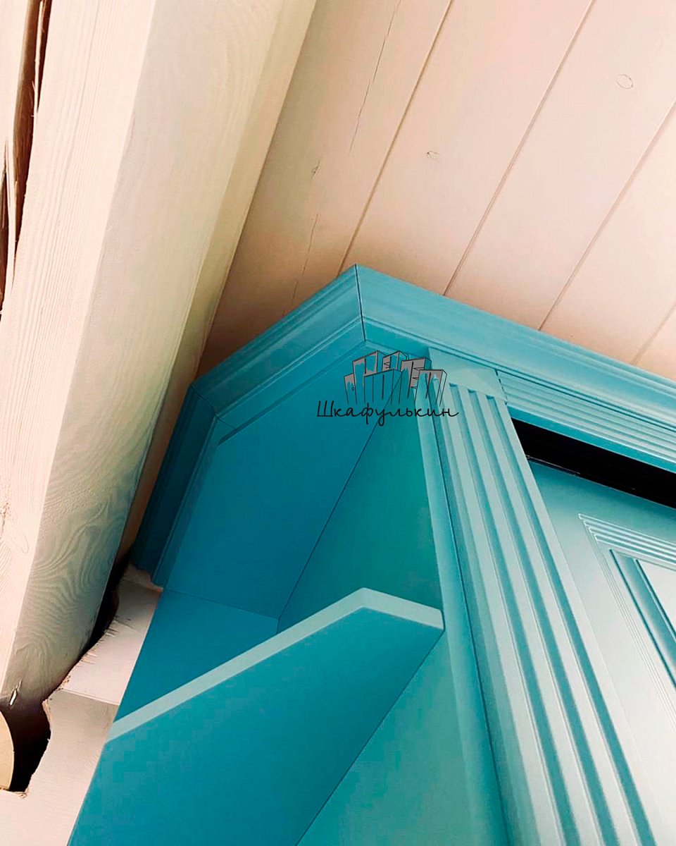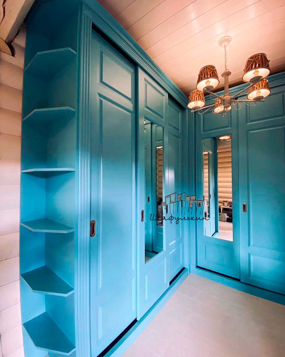 Двери купе - 3шт, Материал - МДФ 25мм, с фрезеровкой "Рим" , крашенные с 1й ст, центральная часть под зеркало, цвет - RAL 6034 матовый;