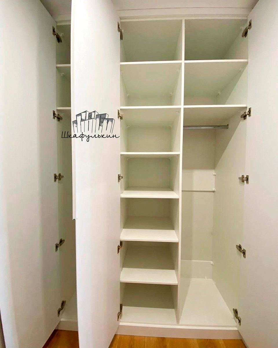 Двери распашные - 4шт, МДФ 19мм краш с 1й стороны, с интегрированной ручкой, цвет - RAL 9016 матовый;