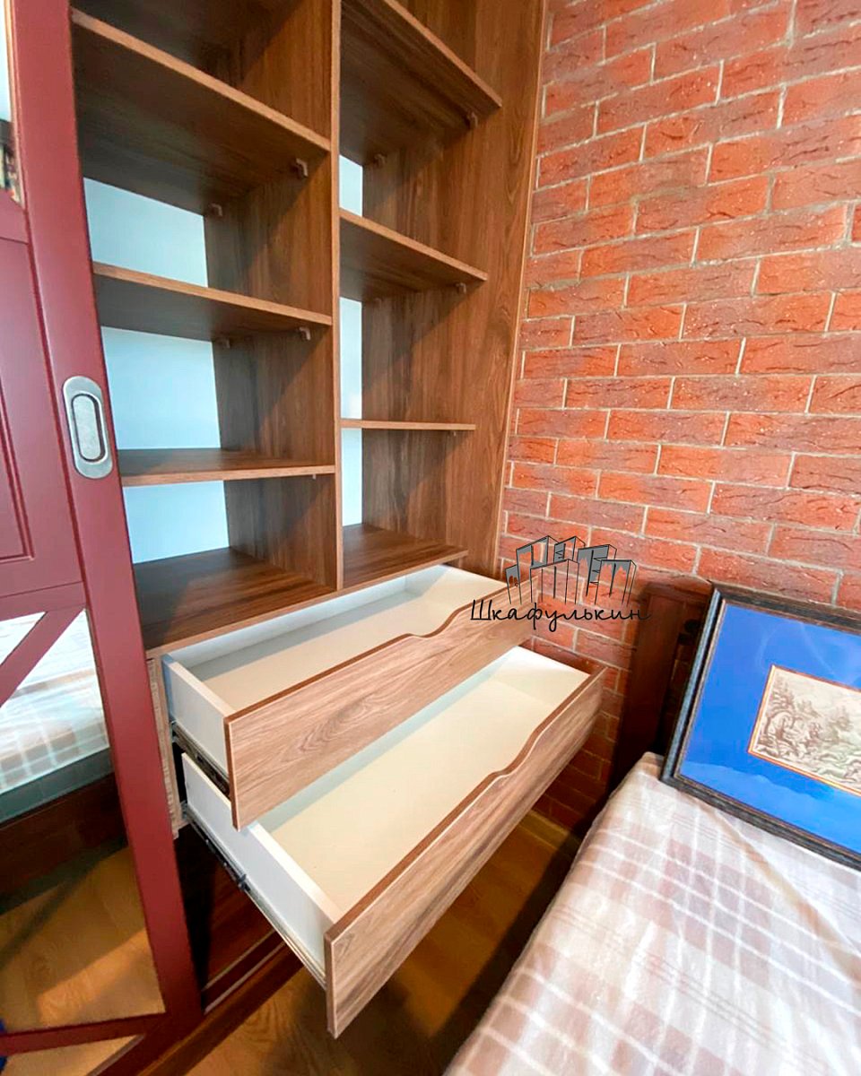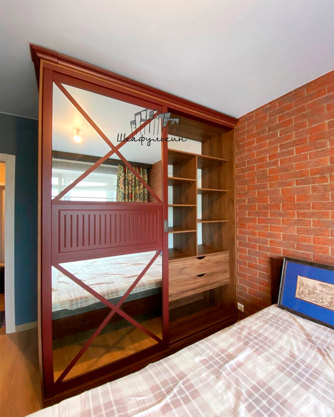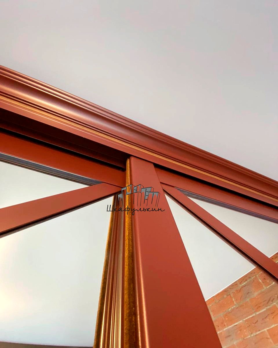 Наполнение дверей купе: Зеркало серебро, МДФ с фрезеровкой цвет - RAL 8015 матовый, делители;