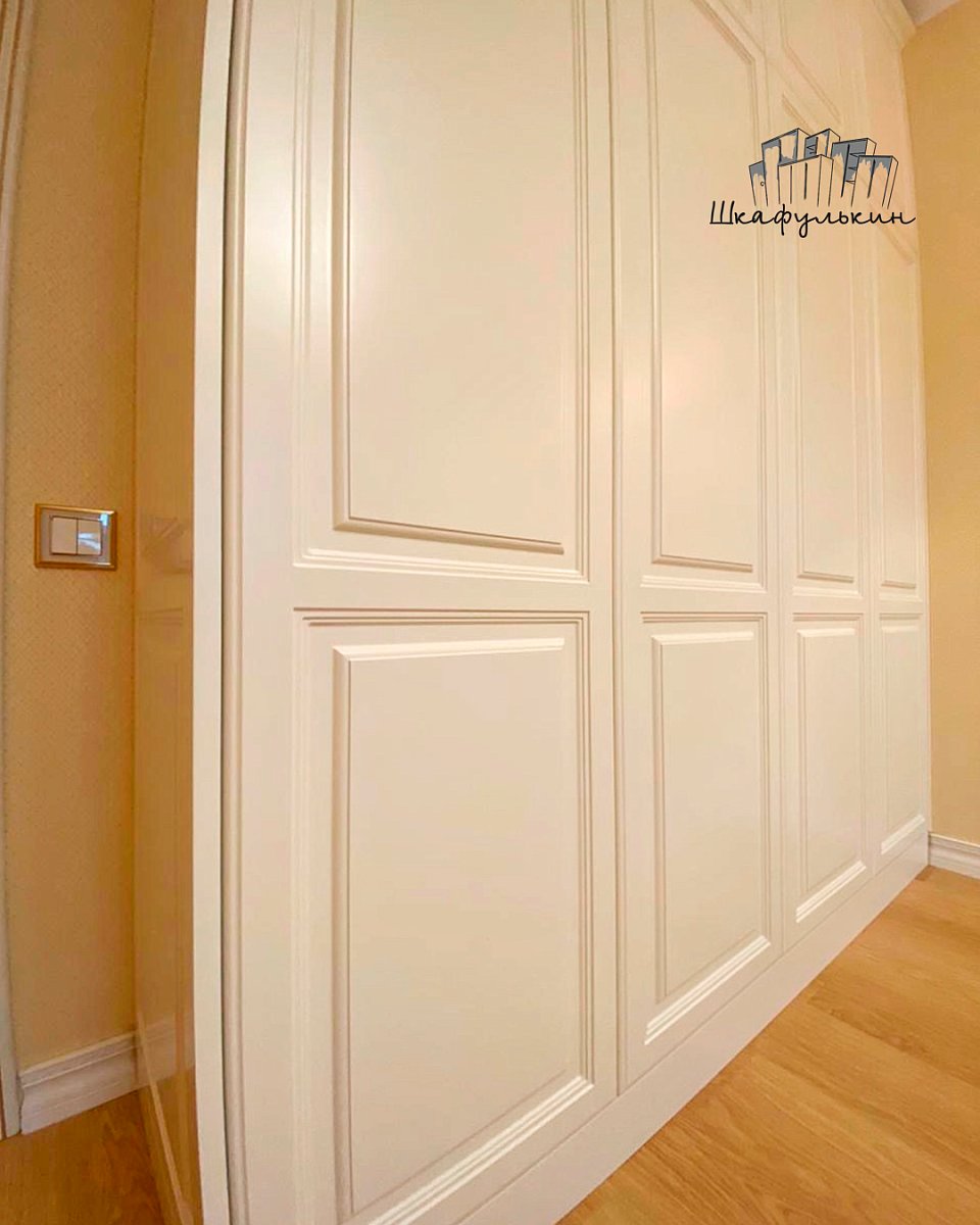 Фасады распашные 8шт: МДФ 19мм. Фрезеровка - "Соренто объёмный". Цвет - RAL 9010 матовый односторонний(обратная сторона - белыйламинат);