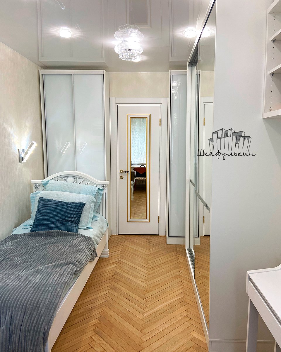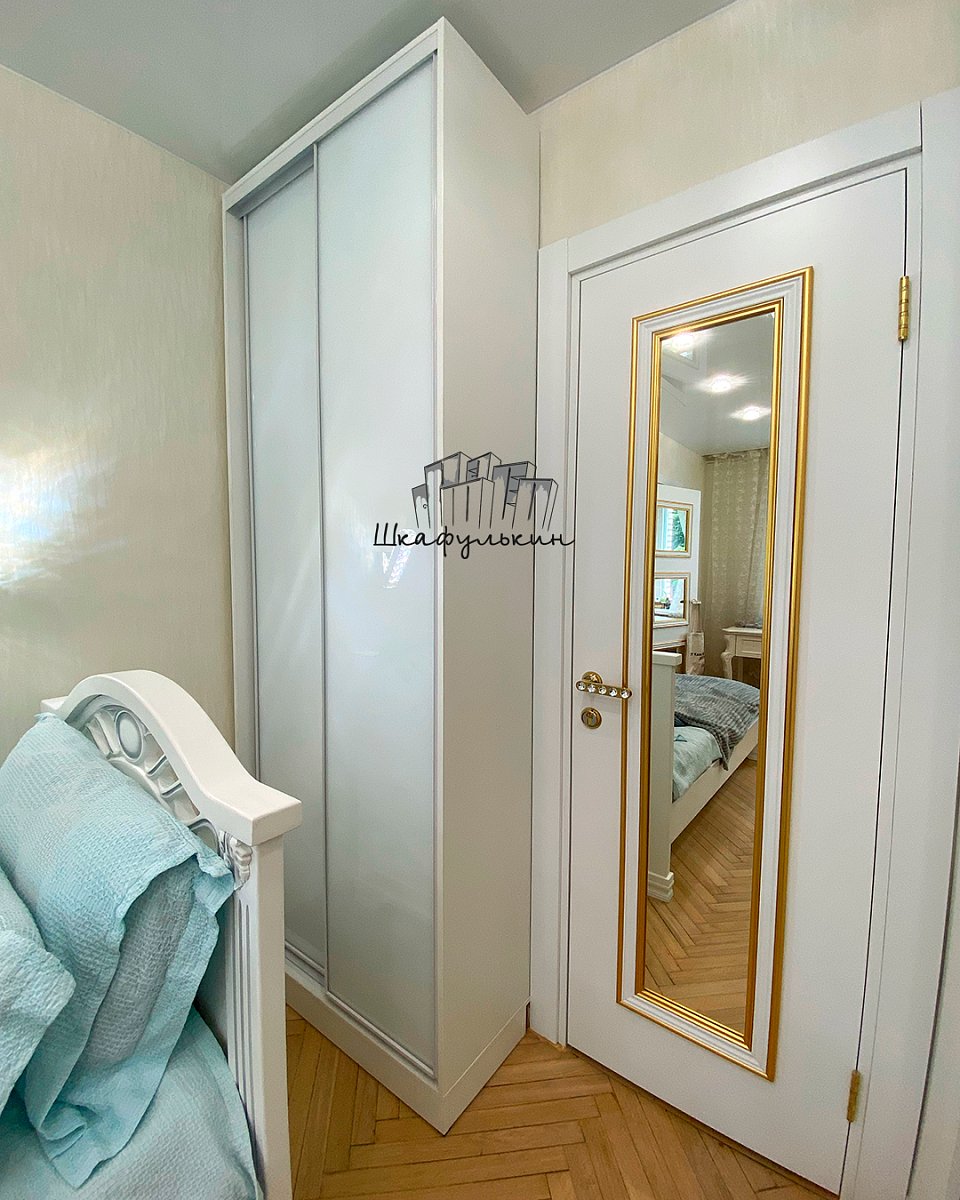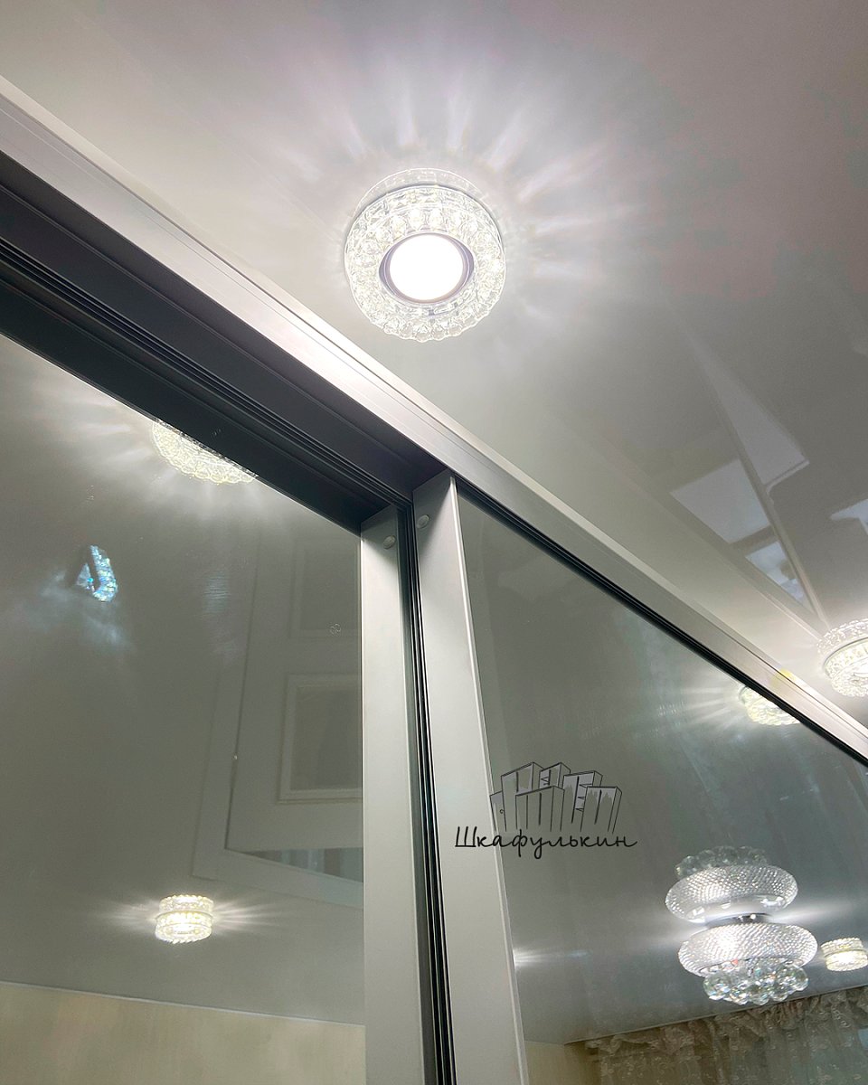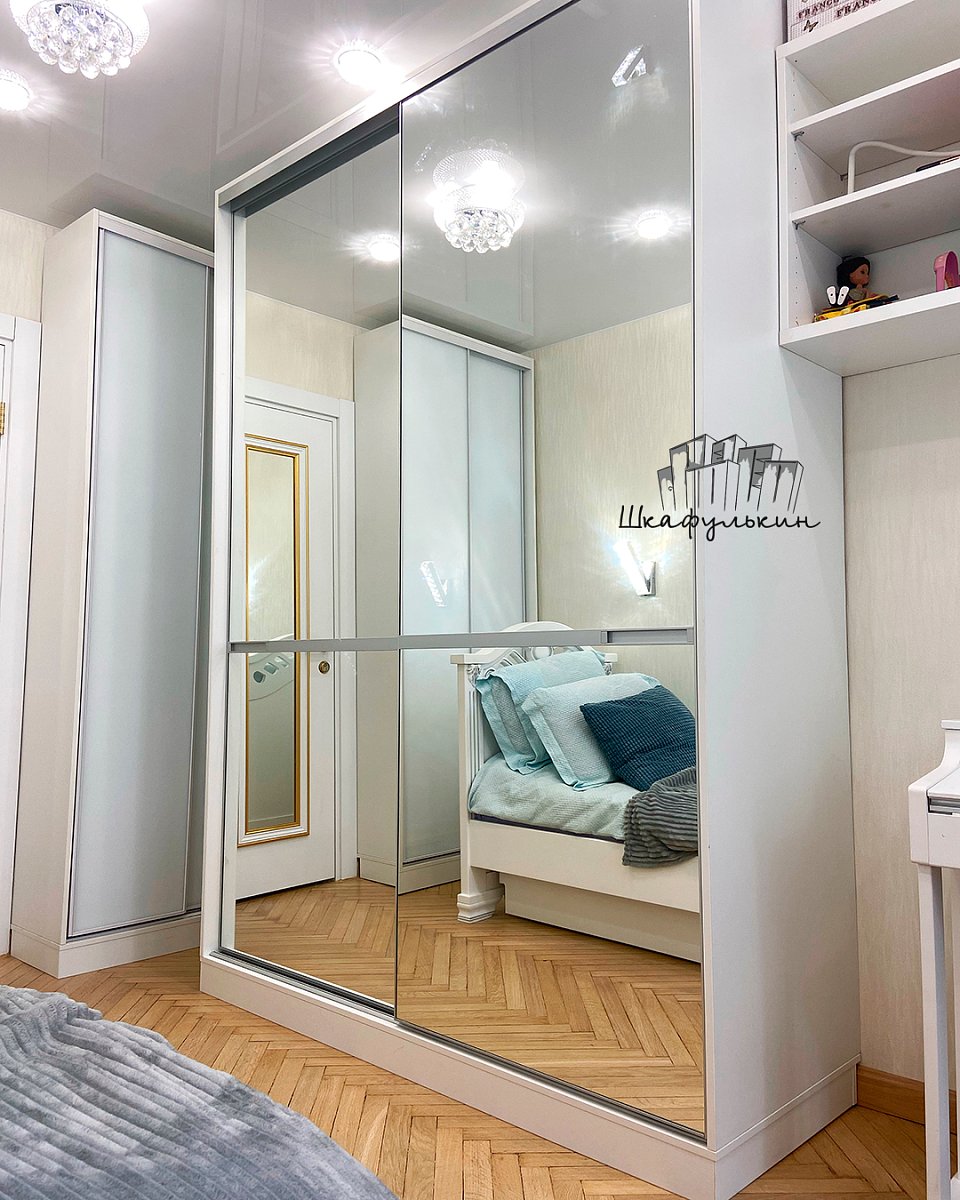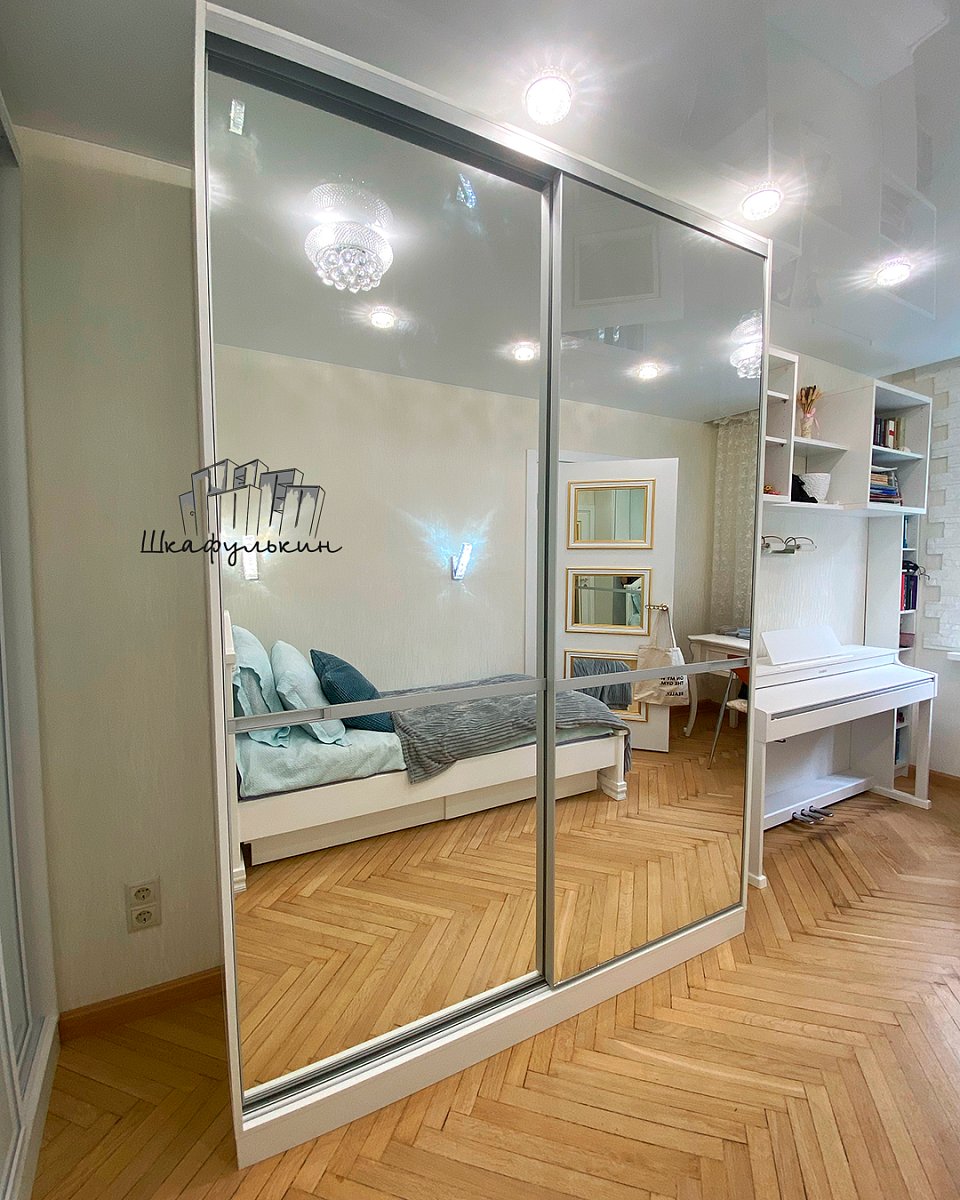 Фасады: 2 шт. Двери-купе . Профиль NOVA хром матовый. Вставка - зеркало серебро 4 мм.