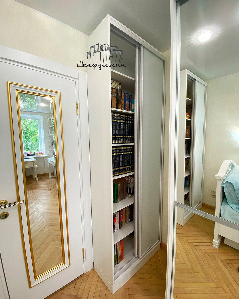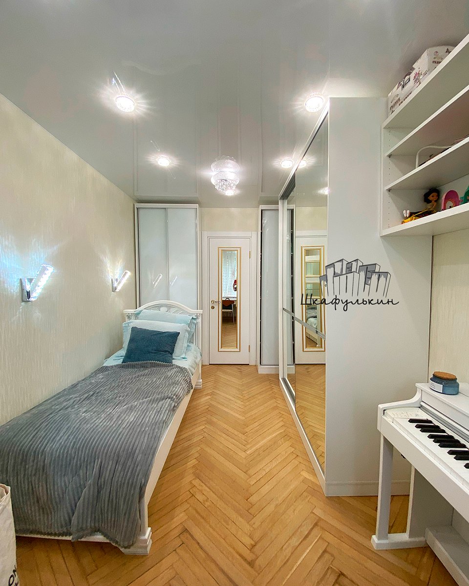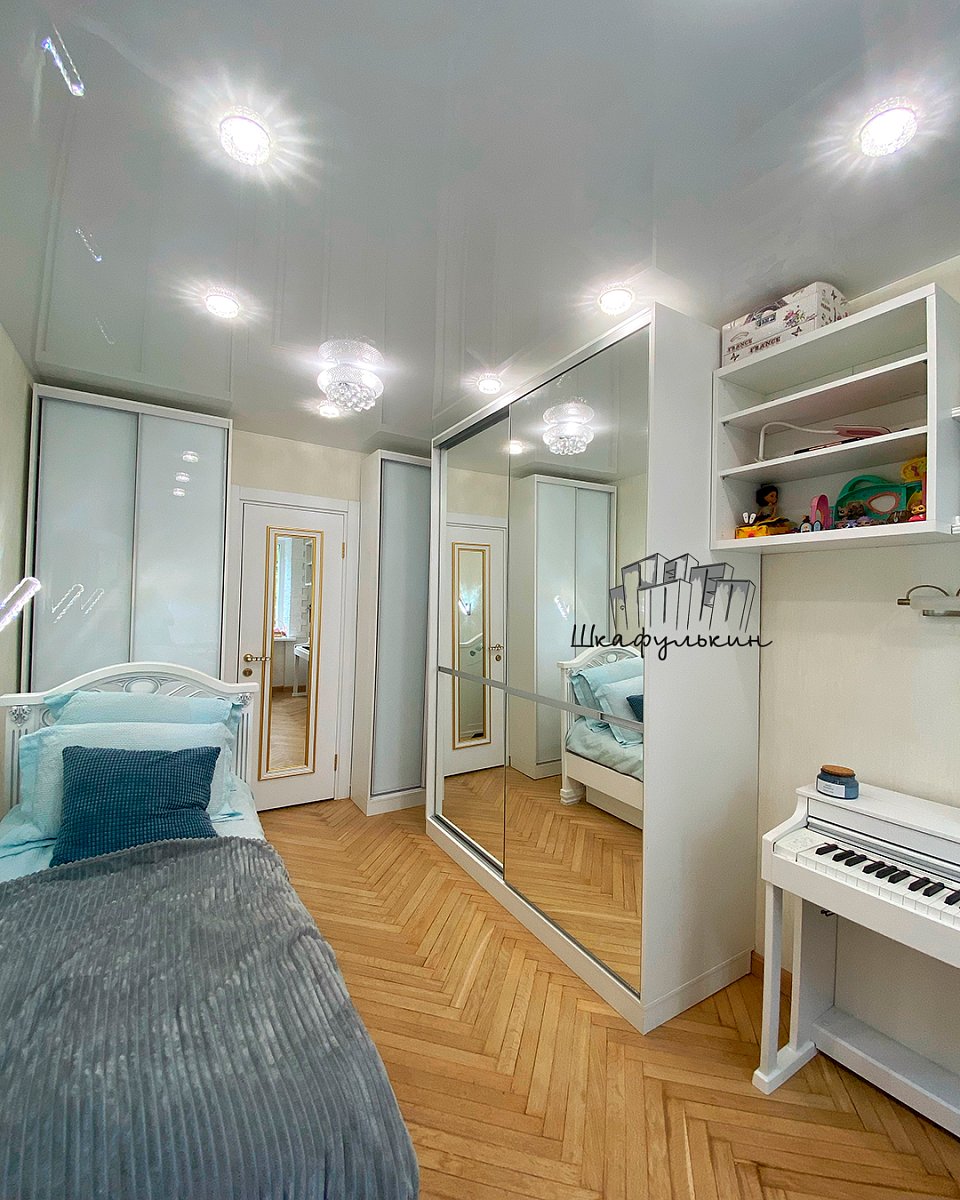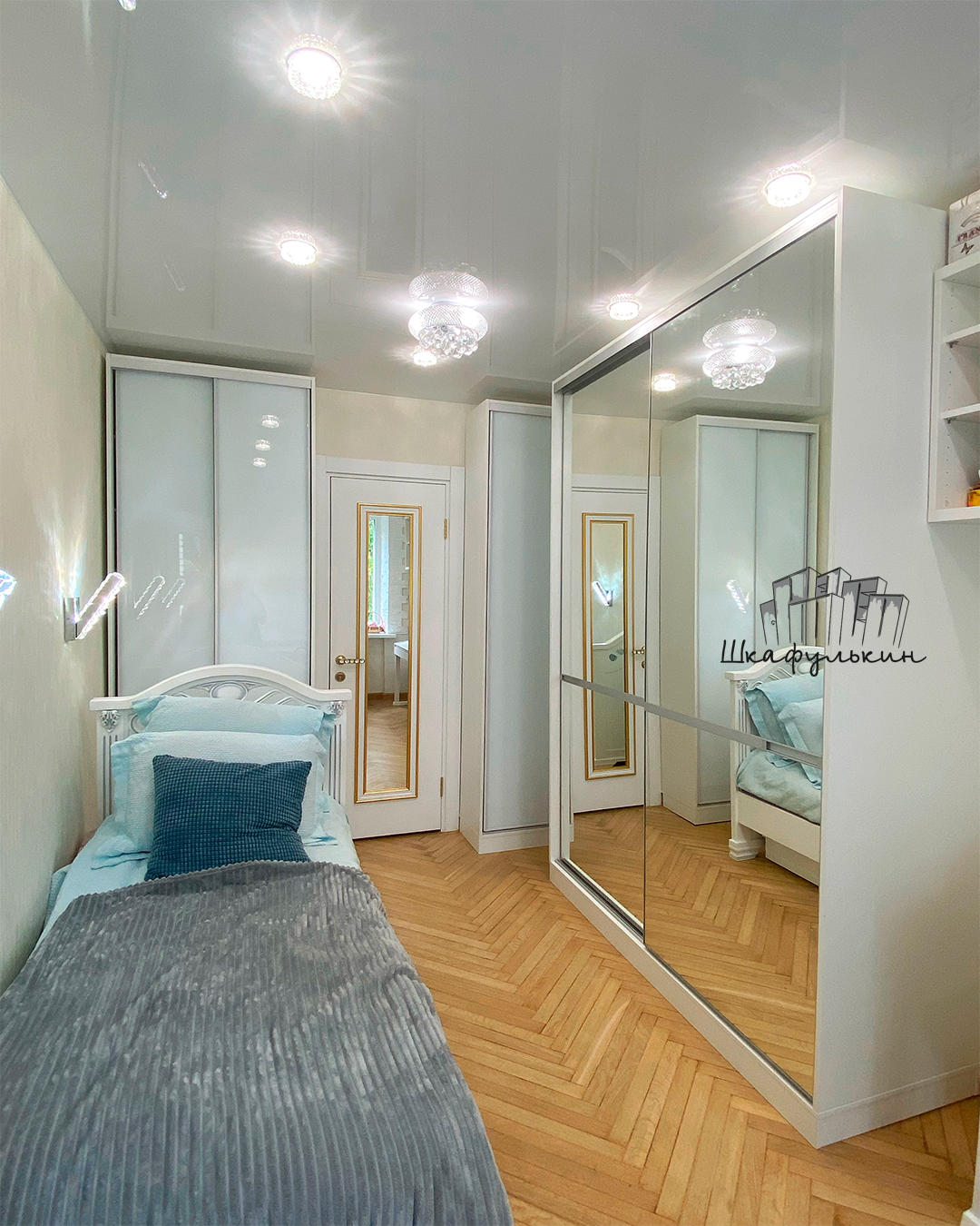 Фасады: 2 шт. Двери-купе . Профиль NOVA хром матовый. Вставка - зеркало серебро 4 мм.