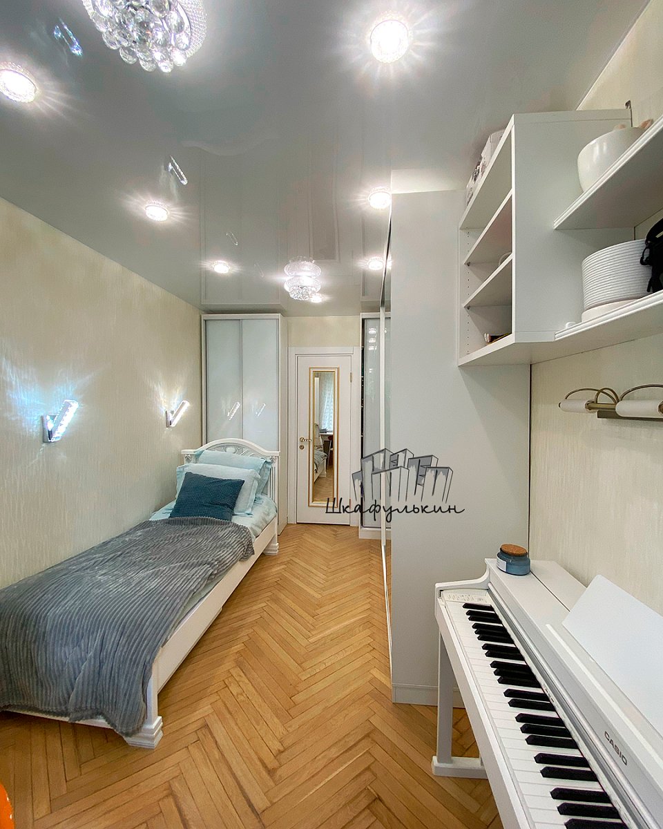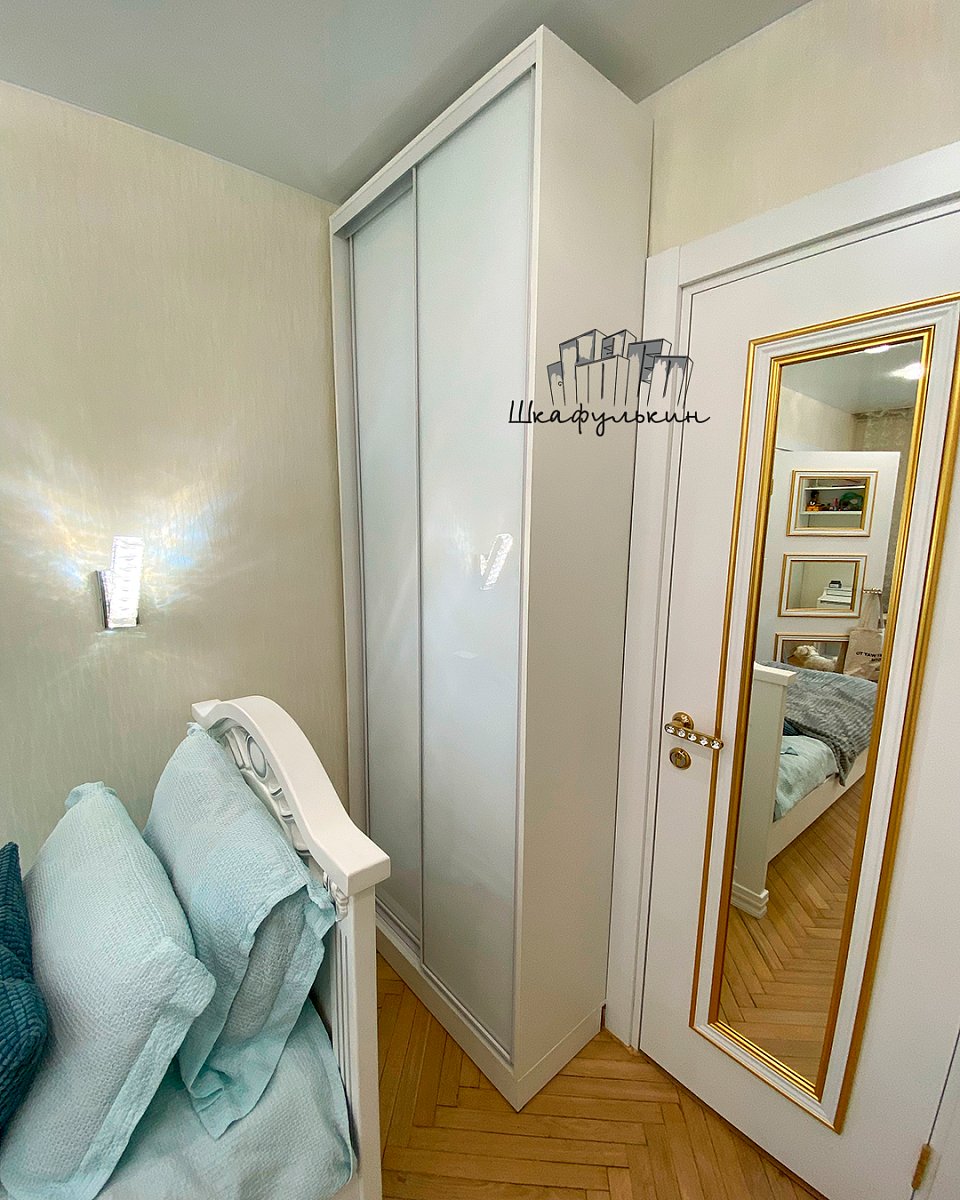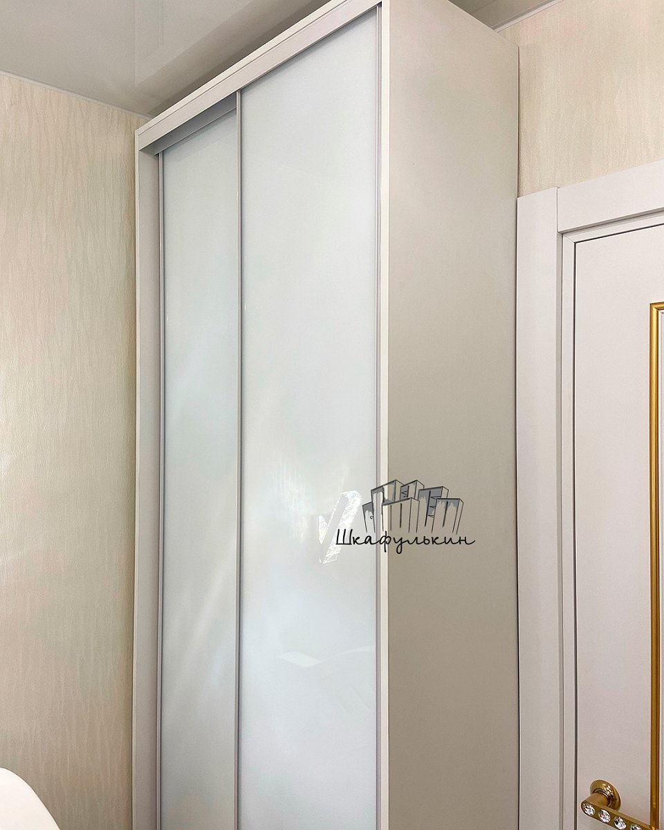 Фасады: 4 шт. Двери-купе . Профиль Модус 164 белый. Вставка - стекло 4 мм лакобель 9003 - 4 шт;