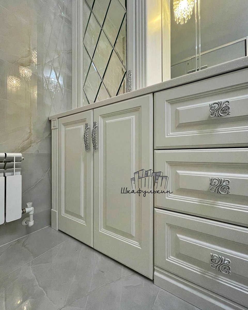 Фасады ящиков 3 шт: МДФ 19 мм RAL 9016 Транспортный белый , односторонняя, матовая, без патины;