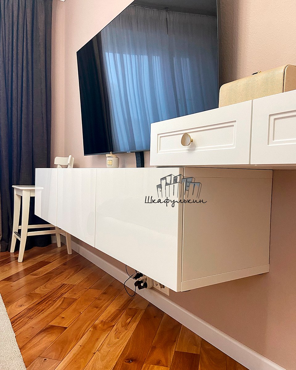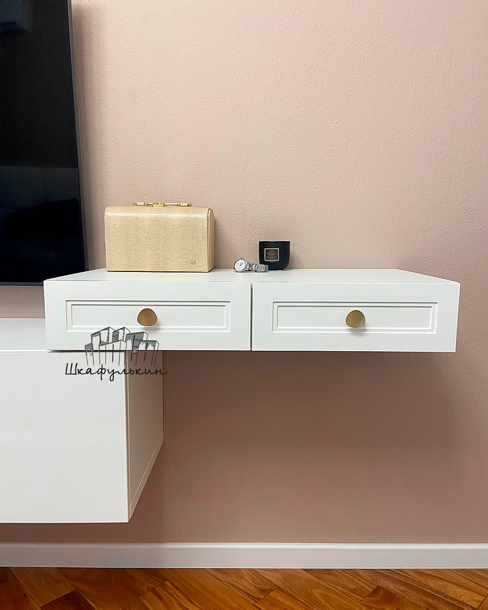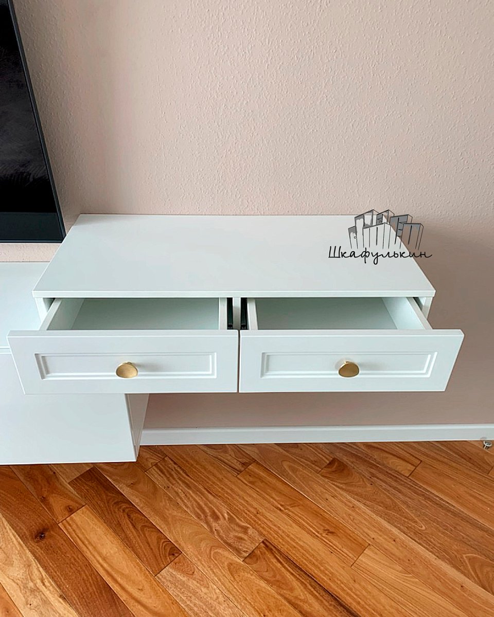 Ящики 2шт. Направляющие шариковые полного выдвижения с доводчиком, длина MAX. Корпус ящика - ЛДСП 16мм W1000 ST9. Белый премиум. Дно ящика - белый оргалит;