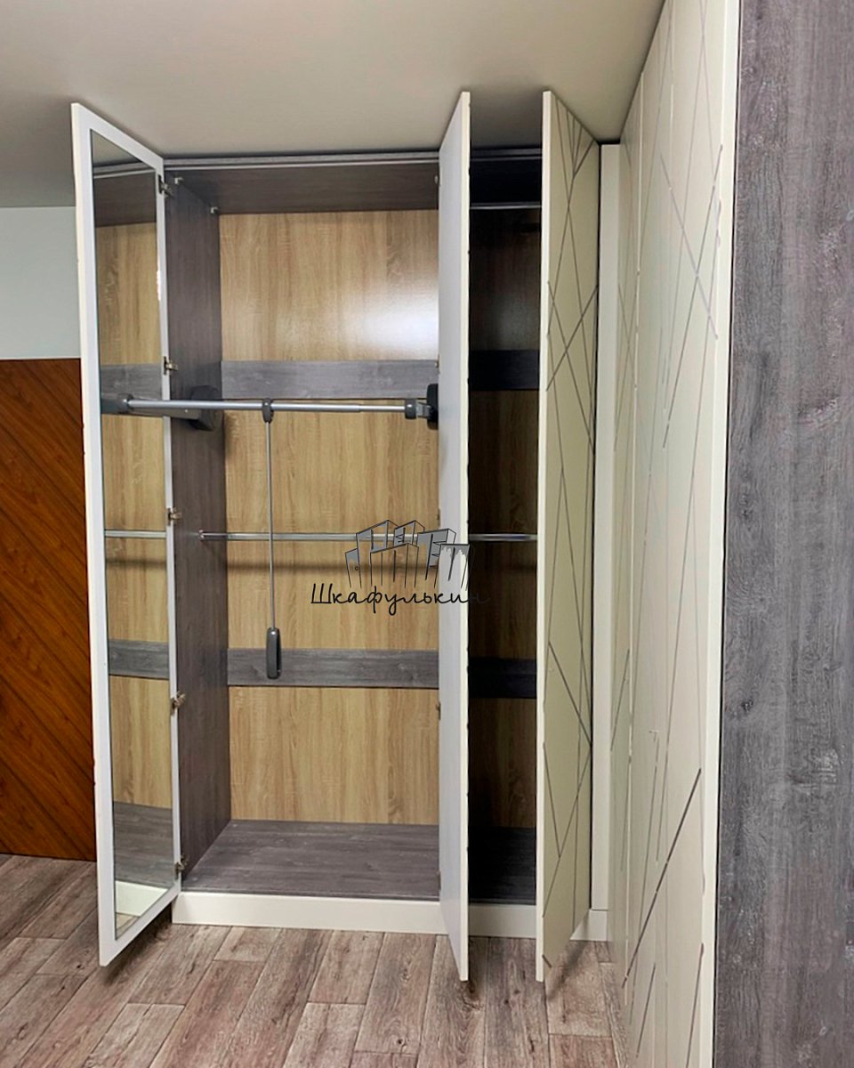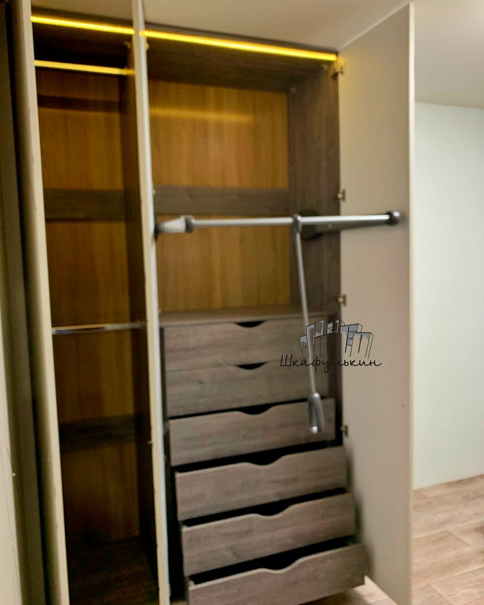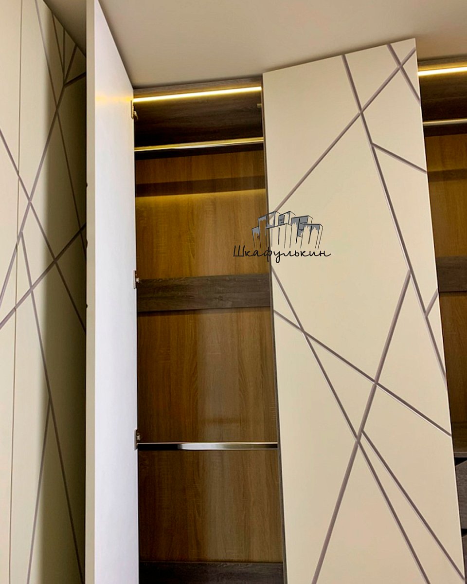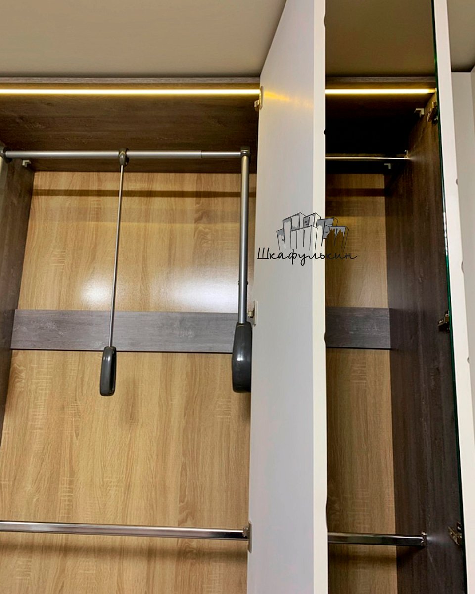 Подсветка - врезная в полку 3,4м, на расстоянии 30мм от передней части, свет теплый, включение сенсорная кнопка;
