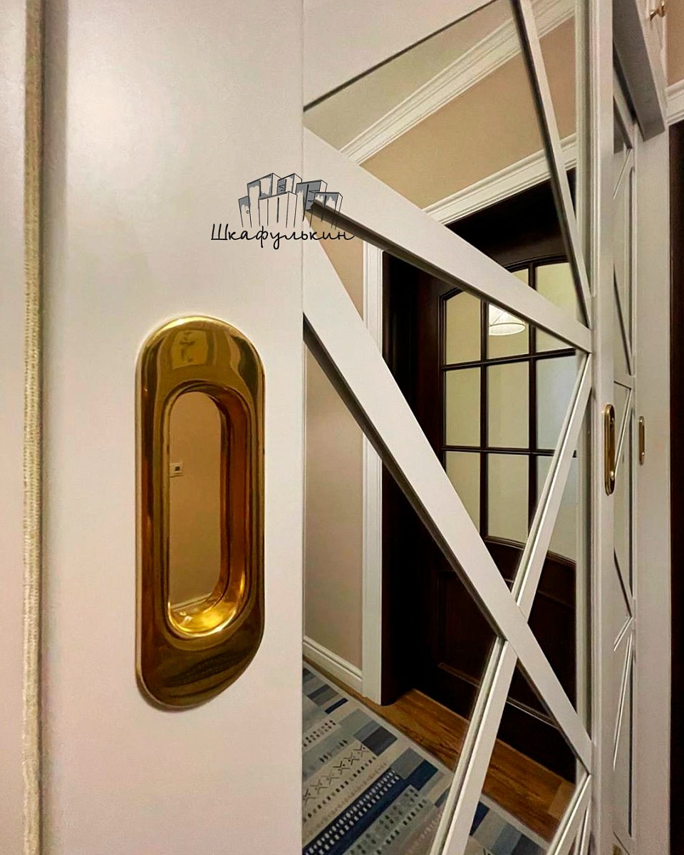 3) Распашной-1 шт. ЛДСП 16 мм W980 SM Белый Платиновый+зеркало серебро 4 мм ,полировка;