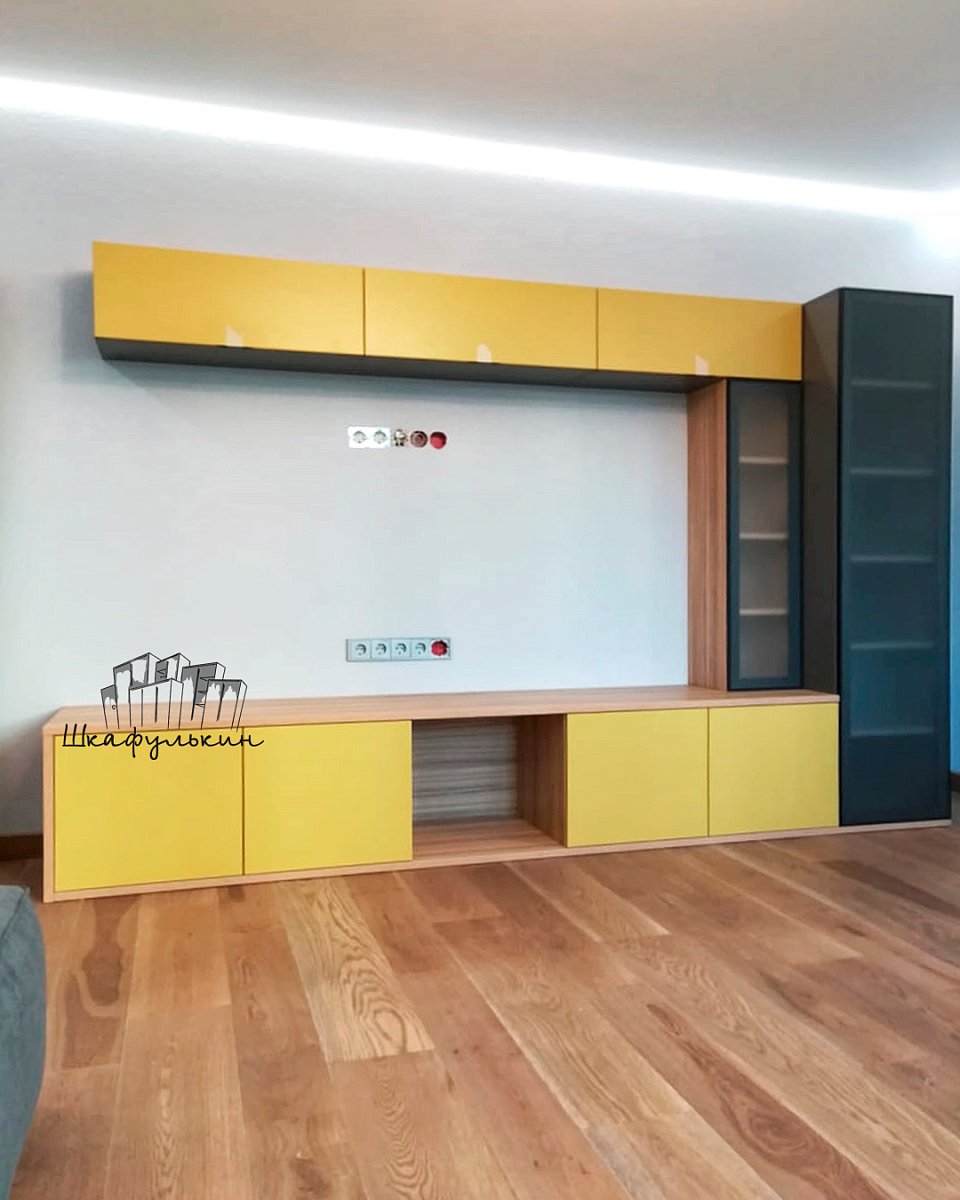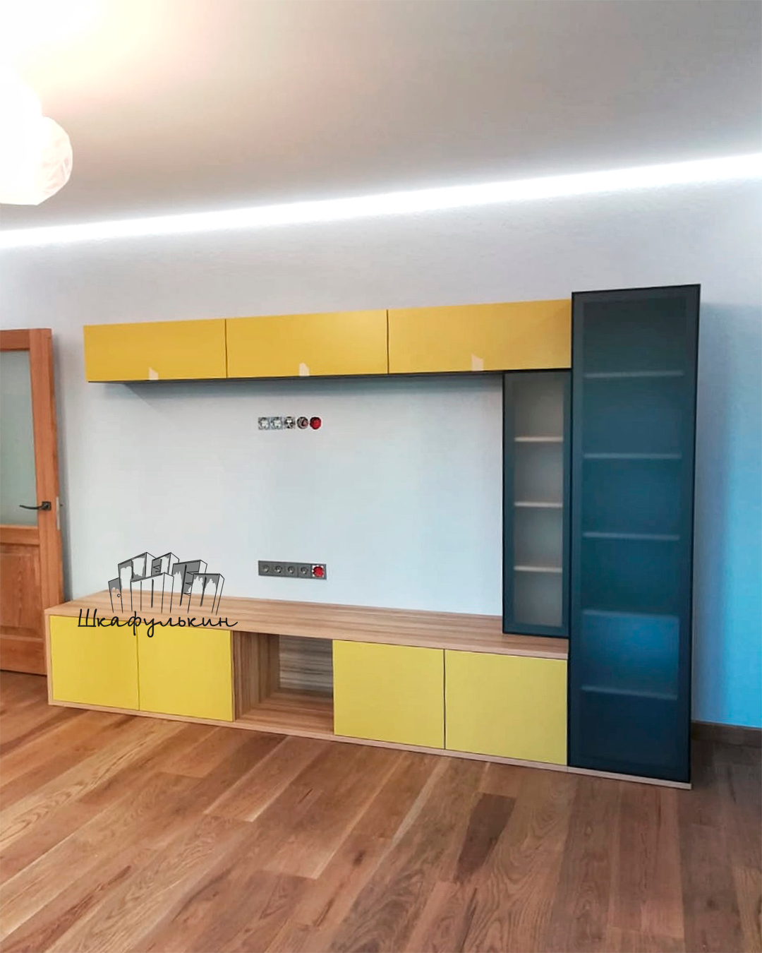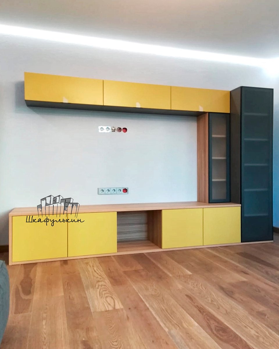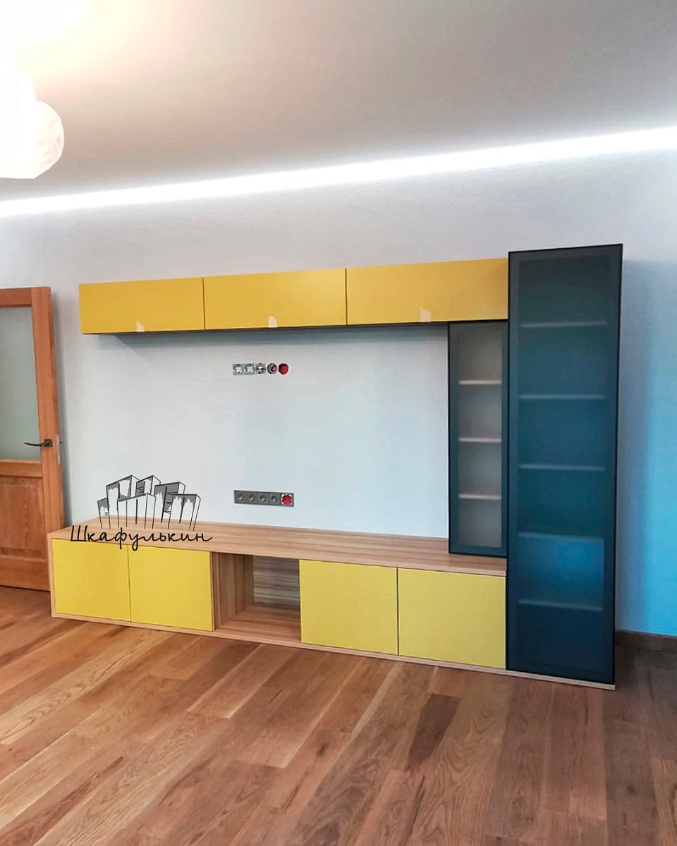 Материал фасада подвесных тумб - МДФ 19мм NCS S 2040-Y матовый односторонний - 3шт ( обратная сторона Белая) с вырезом под ручку с обратной стороны арт.388.64.52 - 3шт;