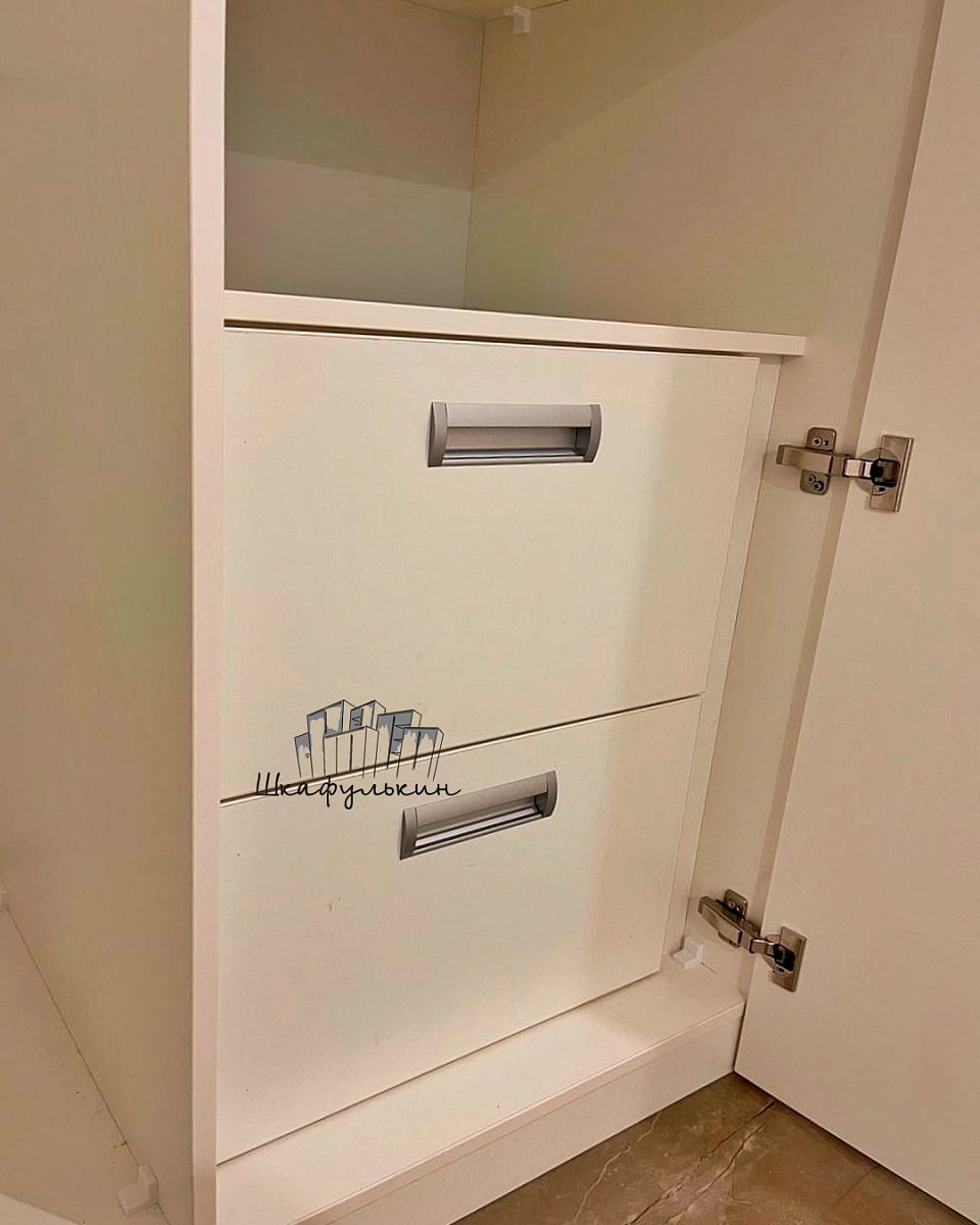 Двери распашные - 2шт, МДФ 19мм, с интегрированной ручкой, крашенные с 1й ст, цвет - NCS S 0502-Y матовый;