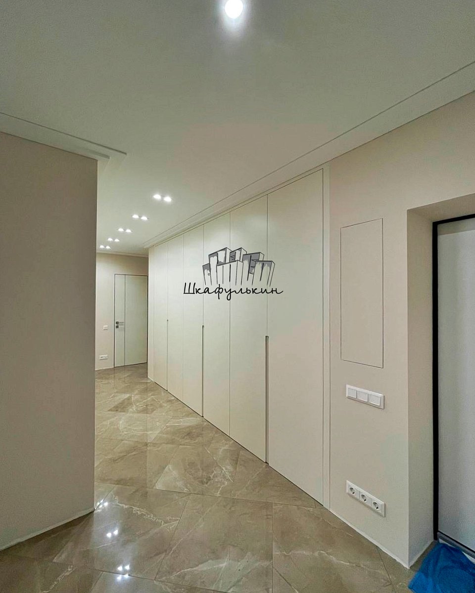 Двери распашные - 6шт, МДФ 19мм, с интегрированной ручкой, крашенные с 1й ст, цвет - NCS S 0502-Y матовый;