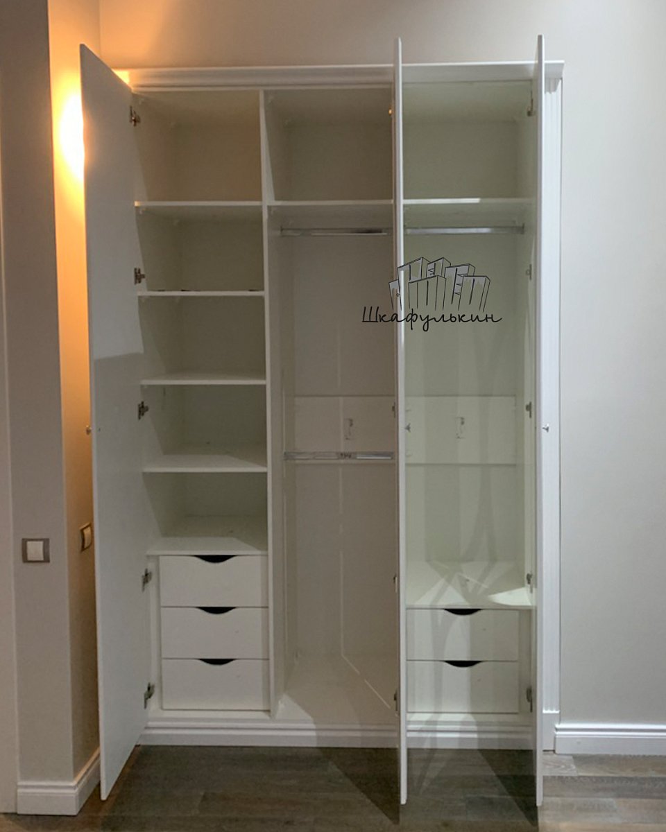 3 двери распашных в МДФ 19 мм цвет - RAL 9016 матовый, Петли BLUM с доводчиком 15 шт. окрас - Односторонний (глухие)/ двусторонний (зеркальный);