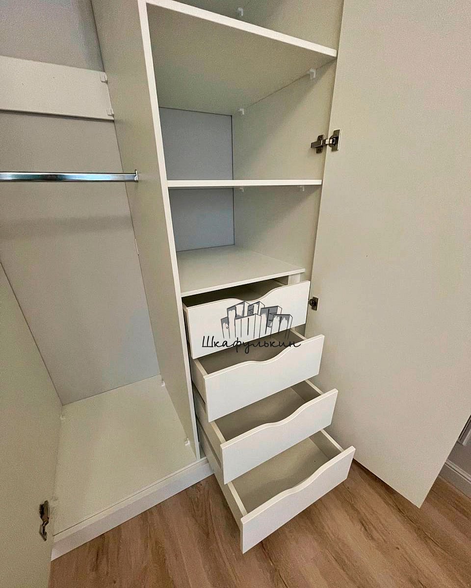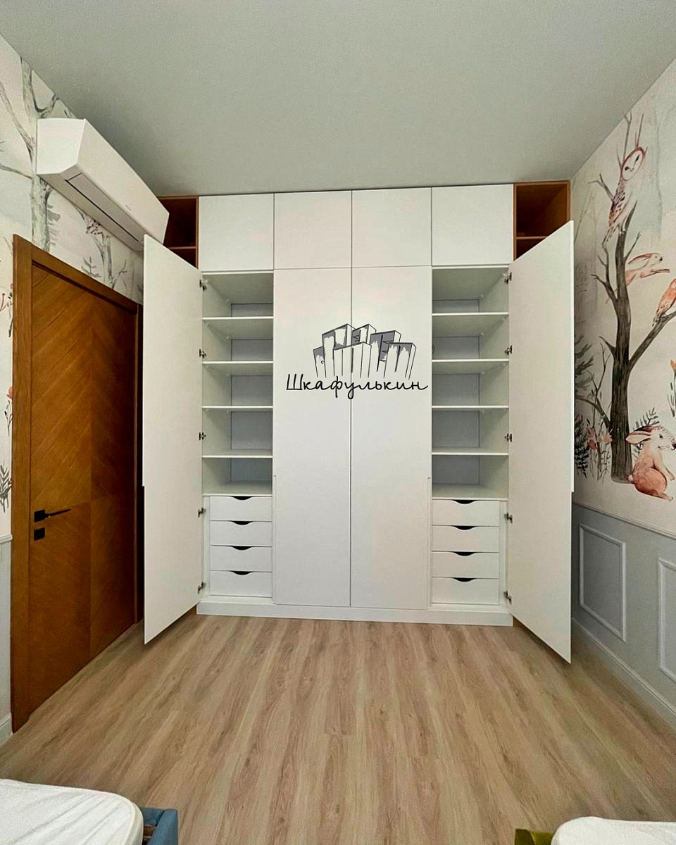 4 двери распашных(вкладные), МДФ 16 мм. цвет - RAL 9016 матовый. Петли BLUM без пружины 8 шт. Tip-on - 4 шт. окрас - Односторонний;