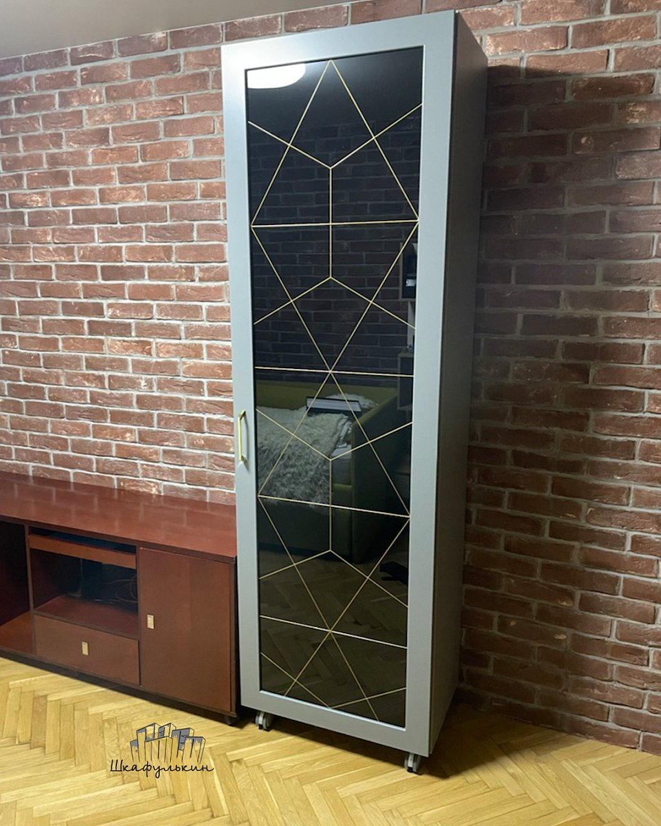 Фасады: 1 шт. Фасад-витрина. Рамка с MIN радиусом по периметру- МДФ 19 мм RAL 7037.