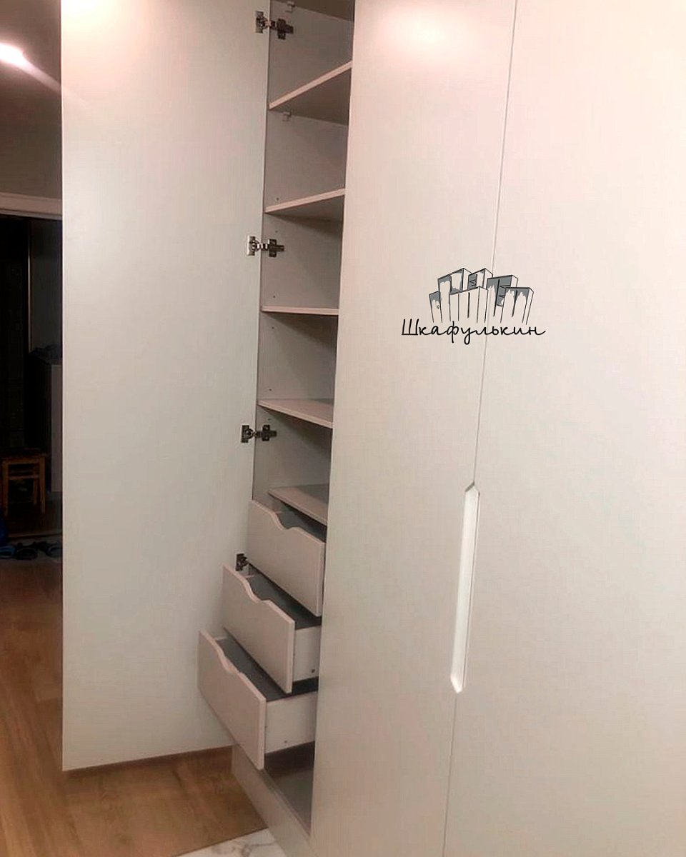 Ящики: 2 шт. Направляющие Blum с доводчиком, полного выдвижения. Длина - MAX . Ручка - вырез под руку;