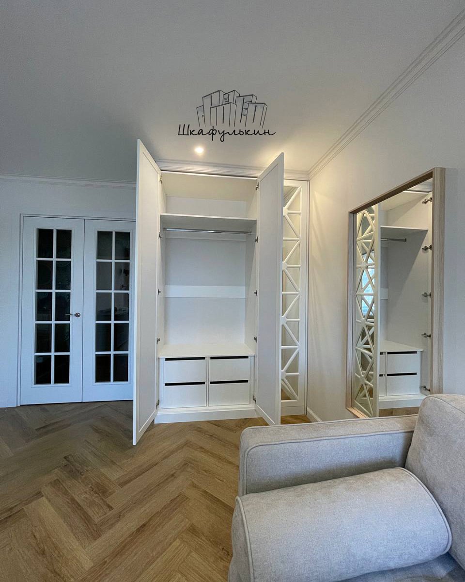 Материал корпуса: МДФ 19мм / покраска: NCS S 0502 G50Y и ЛДСП W980 16 мм Белый платиновый.