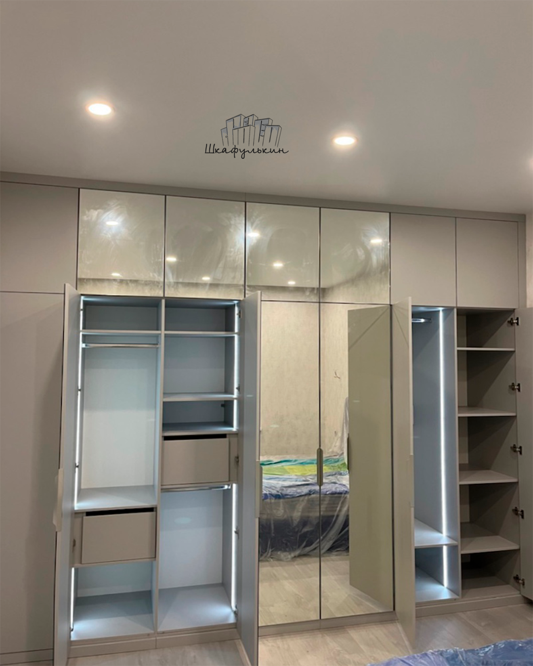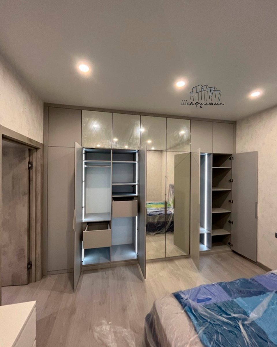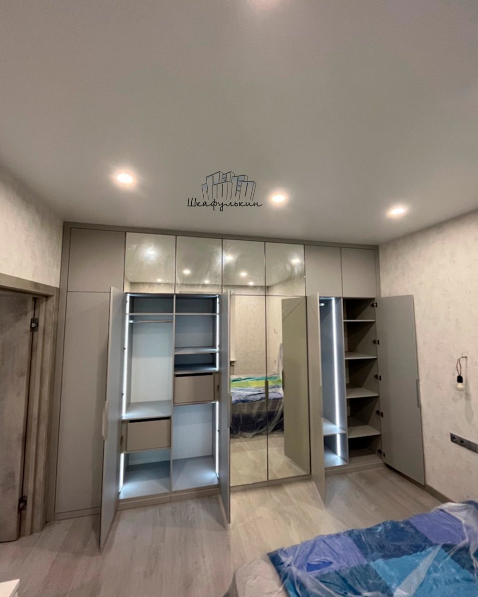 Шкаф распашной частично встроенный в спальню