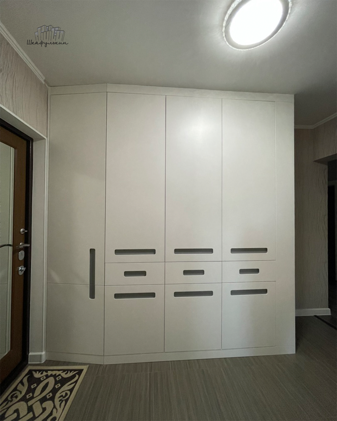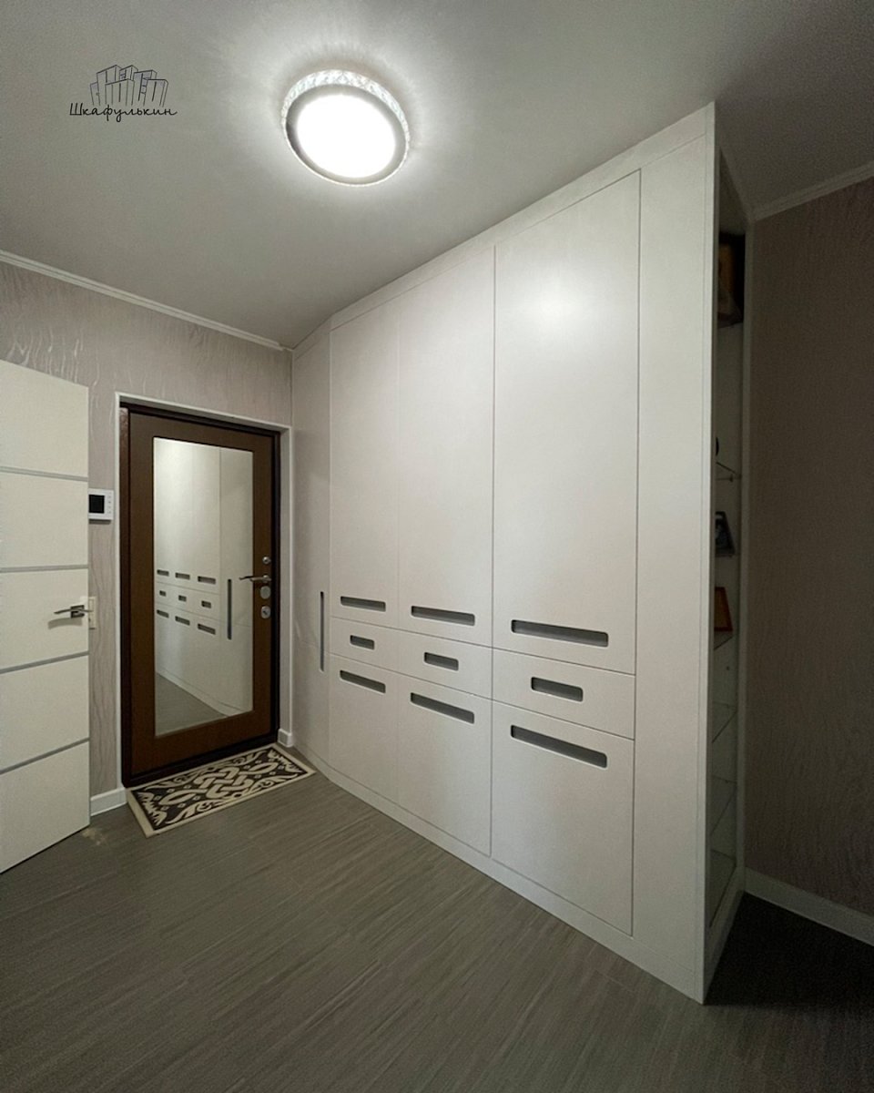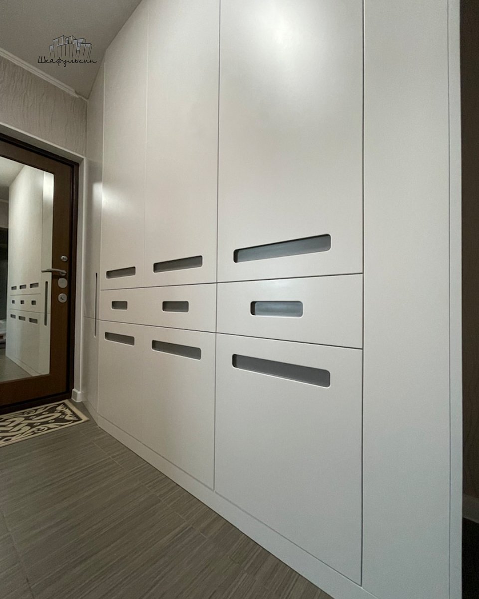 Фасад распашной: 8 шт. / МДФ 19мм / покраска: NCS S 0500 N односторонняя матовая / ручка интегрированная: NCS S 4000 N.