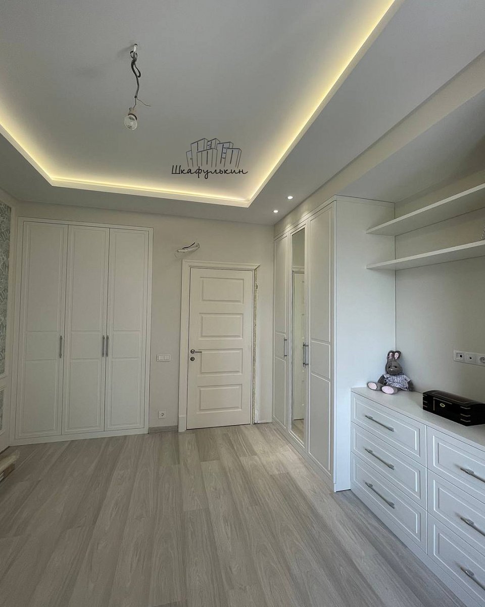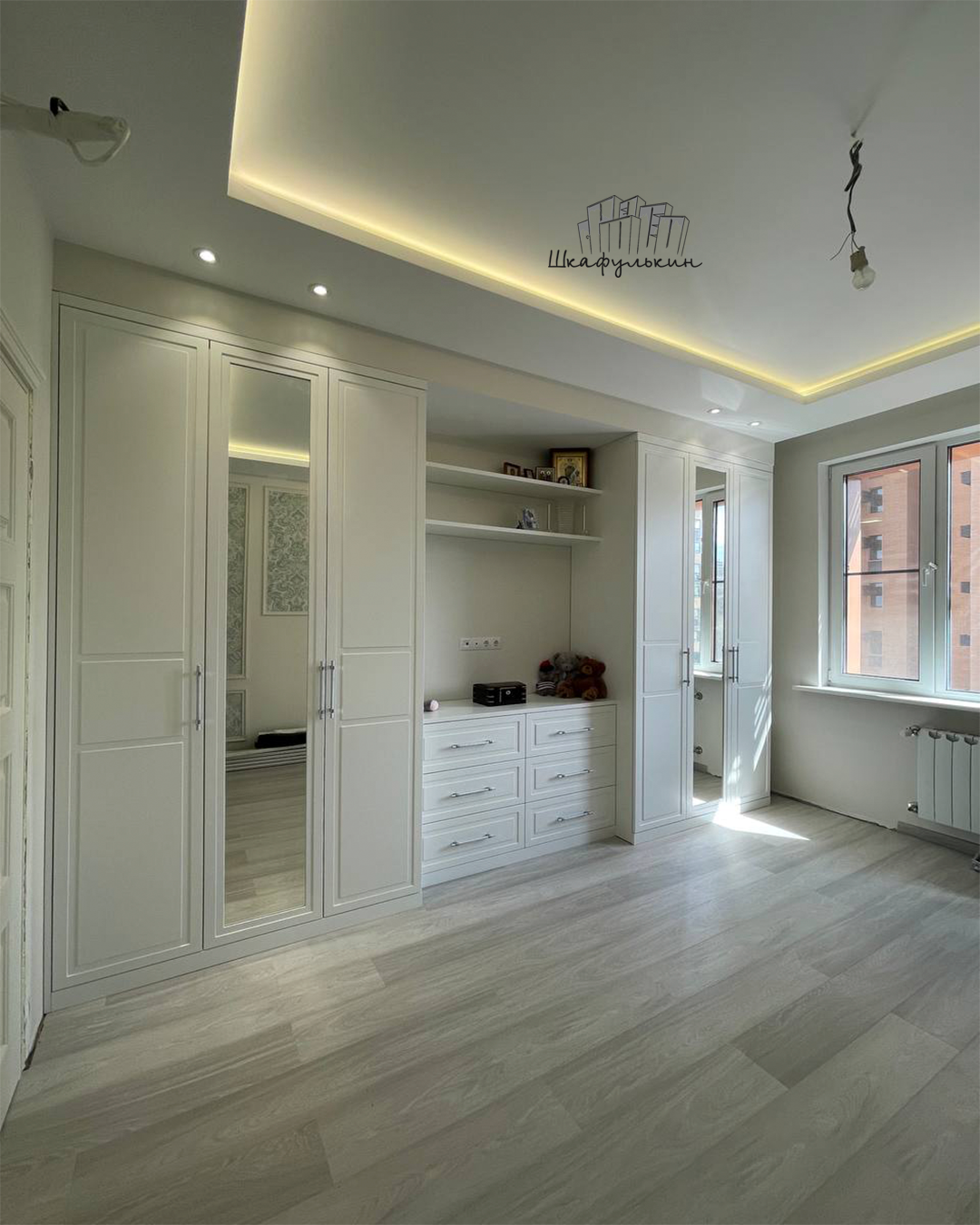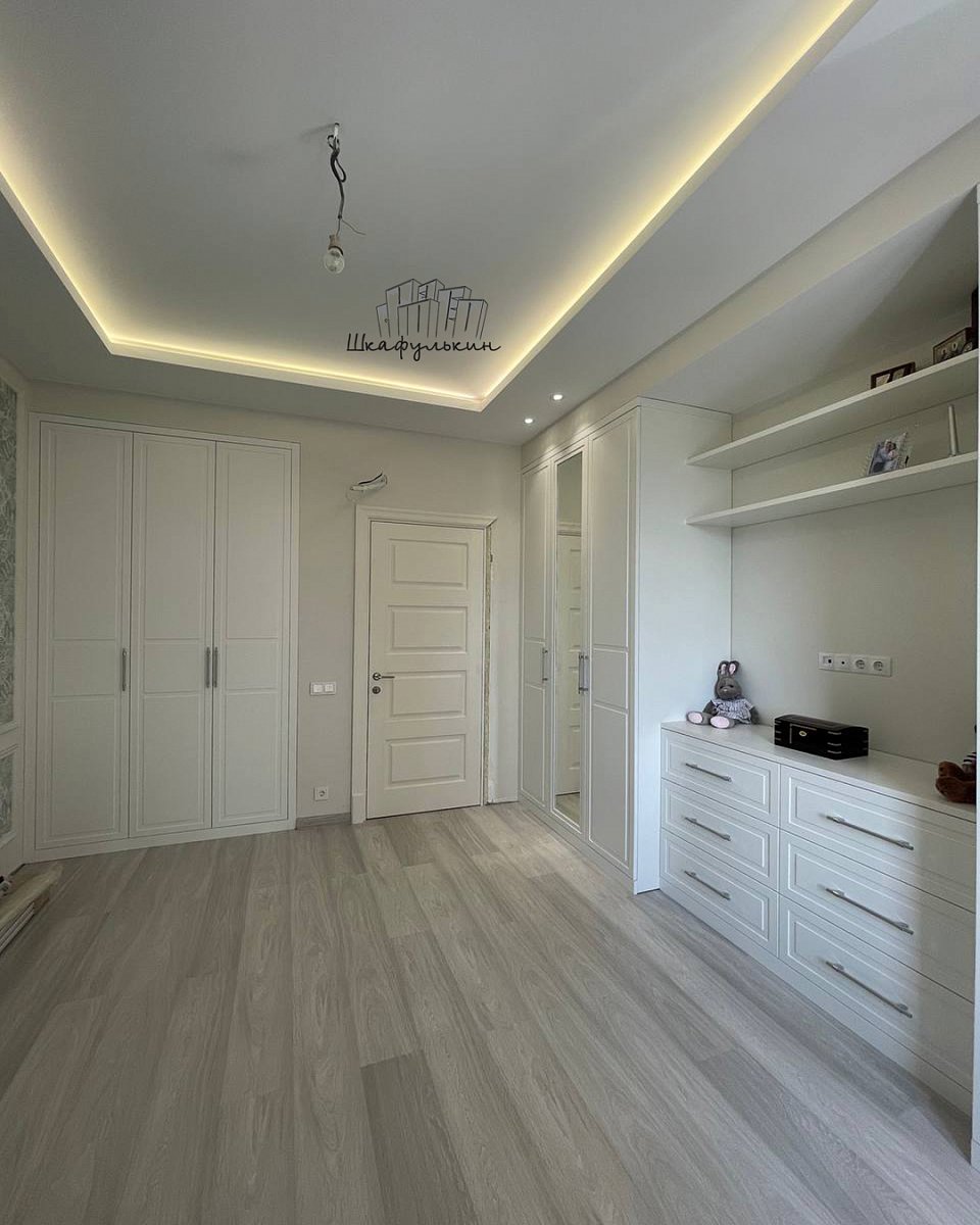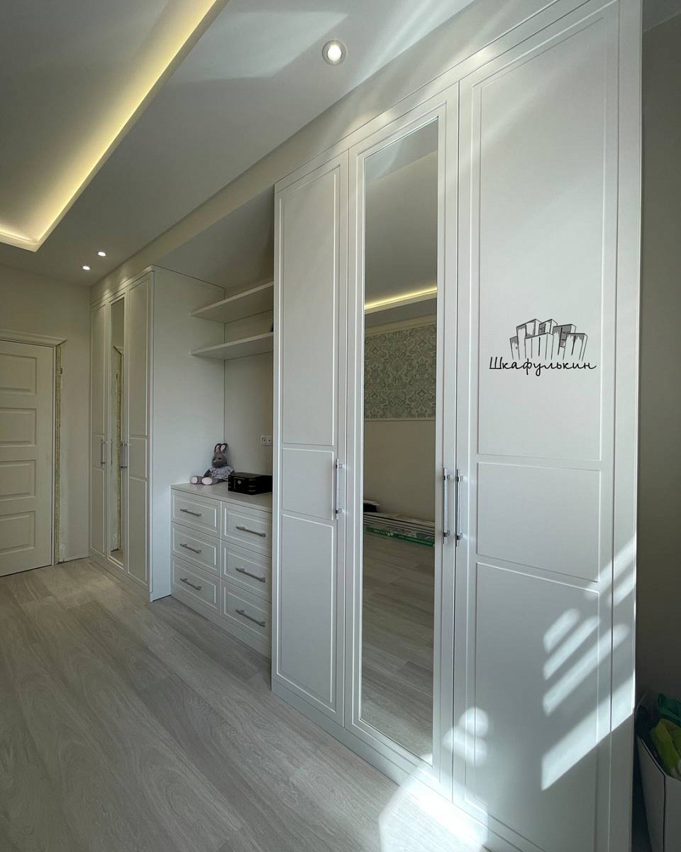 Фасад распашной: МДФ 19мм / объемный / покраска: RAL 9016.