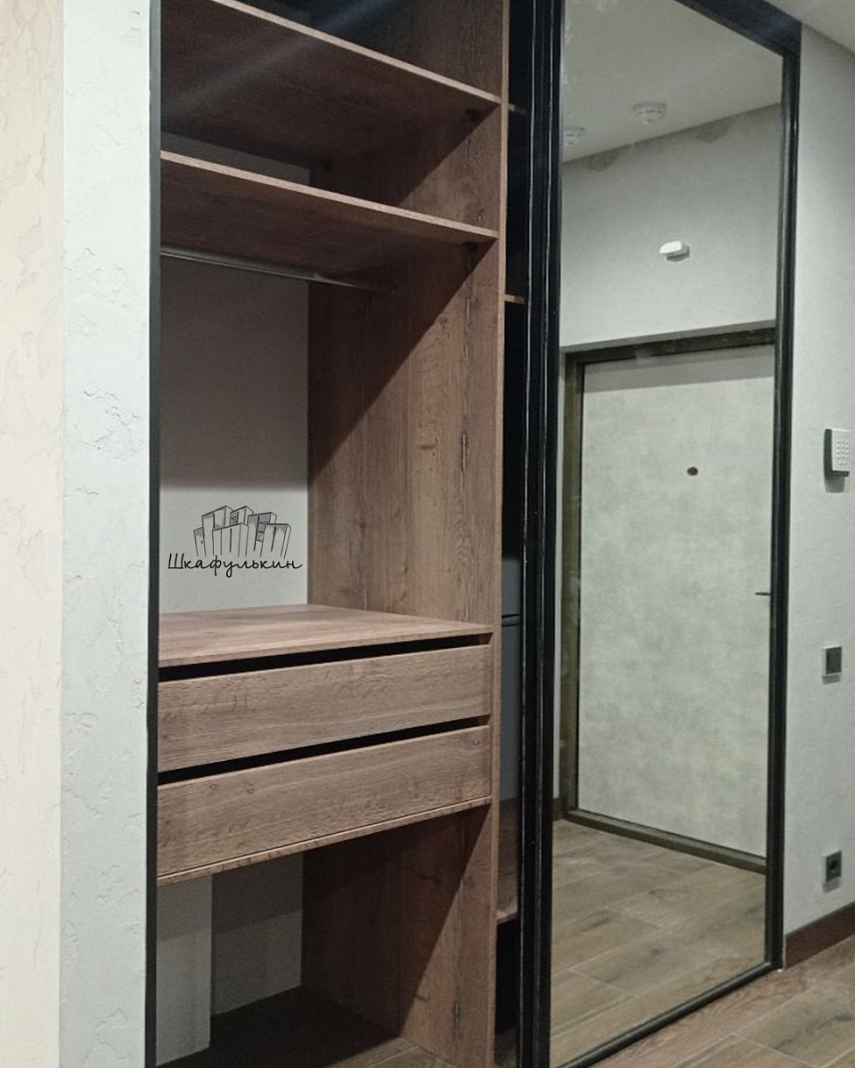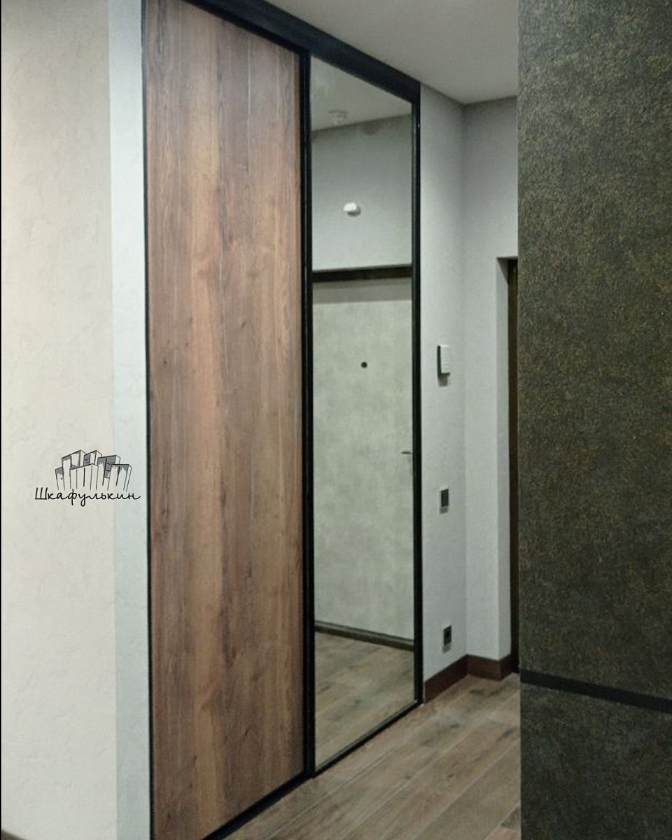 Двери-купе: MODUS MS 163, декор: Черный браш A25 / вставка: зеркало серебро / треки: Черный браш A25 / / нижний трек: Черный браш A25.
