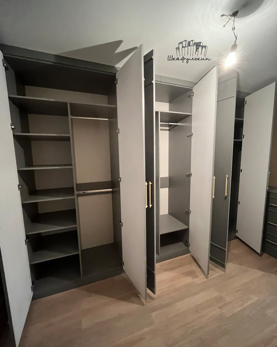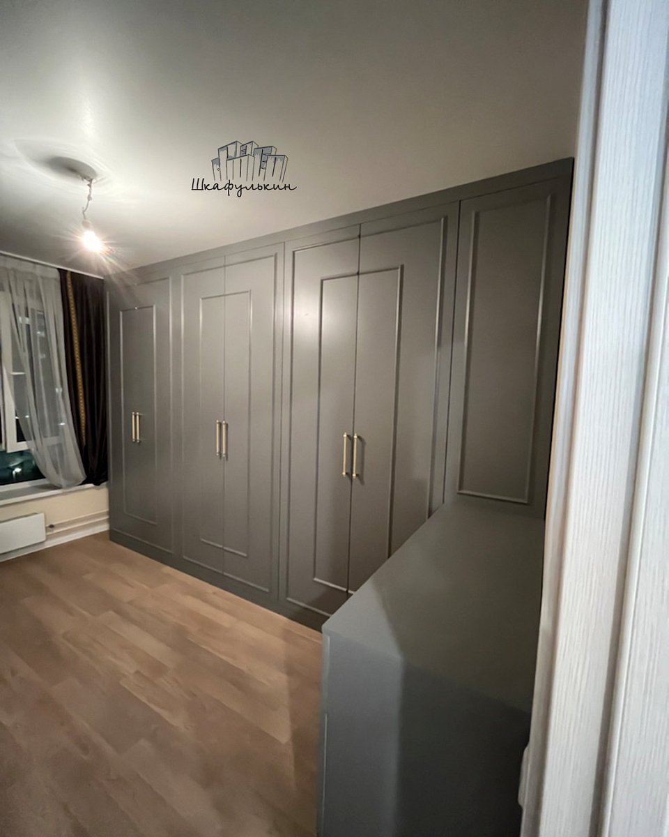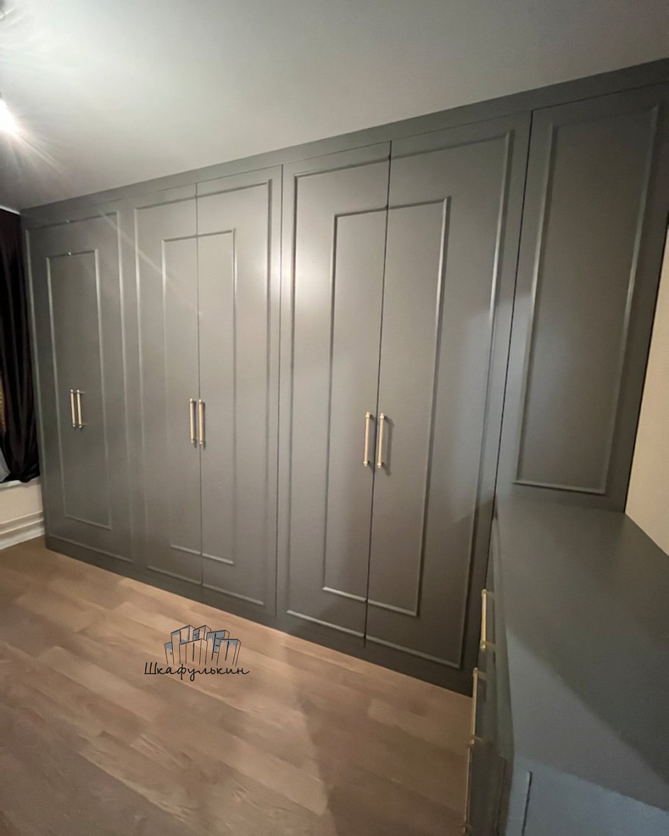 Фасад распашной: 6 шт. / МДФ 19мм / молдинг / покраска: RAL 7037.