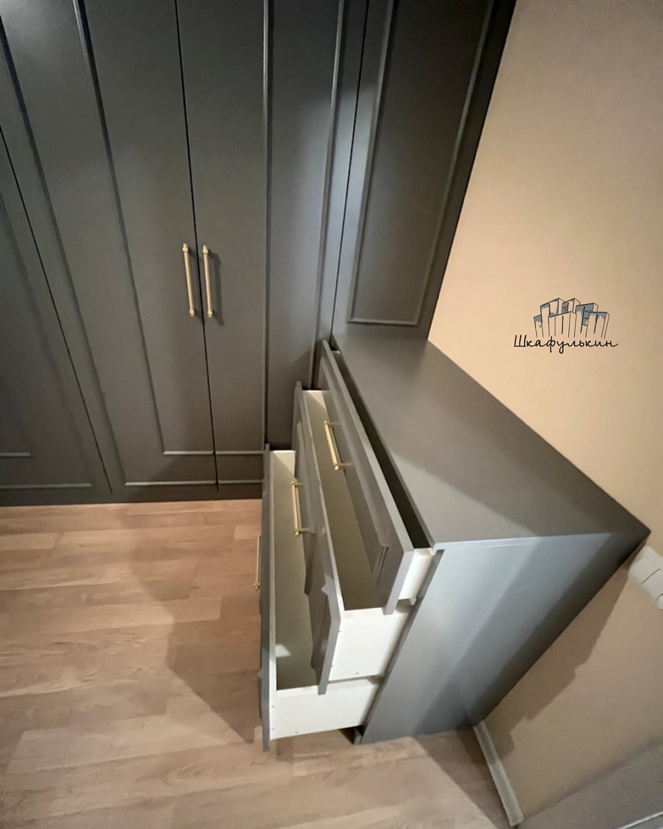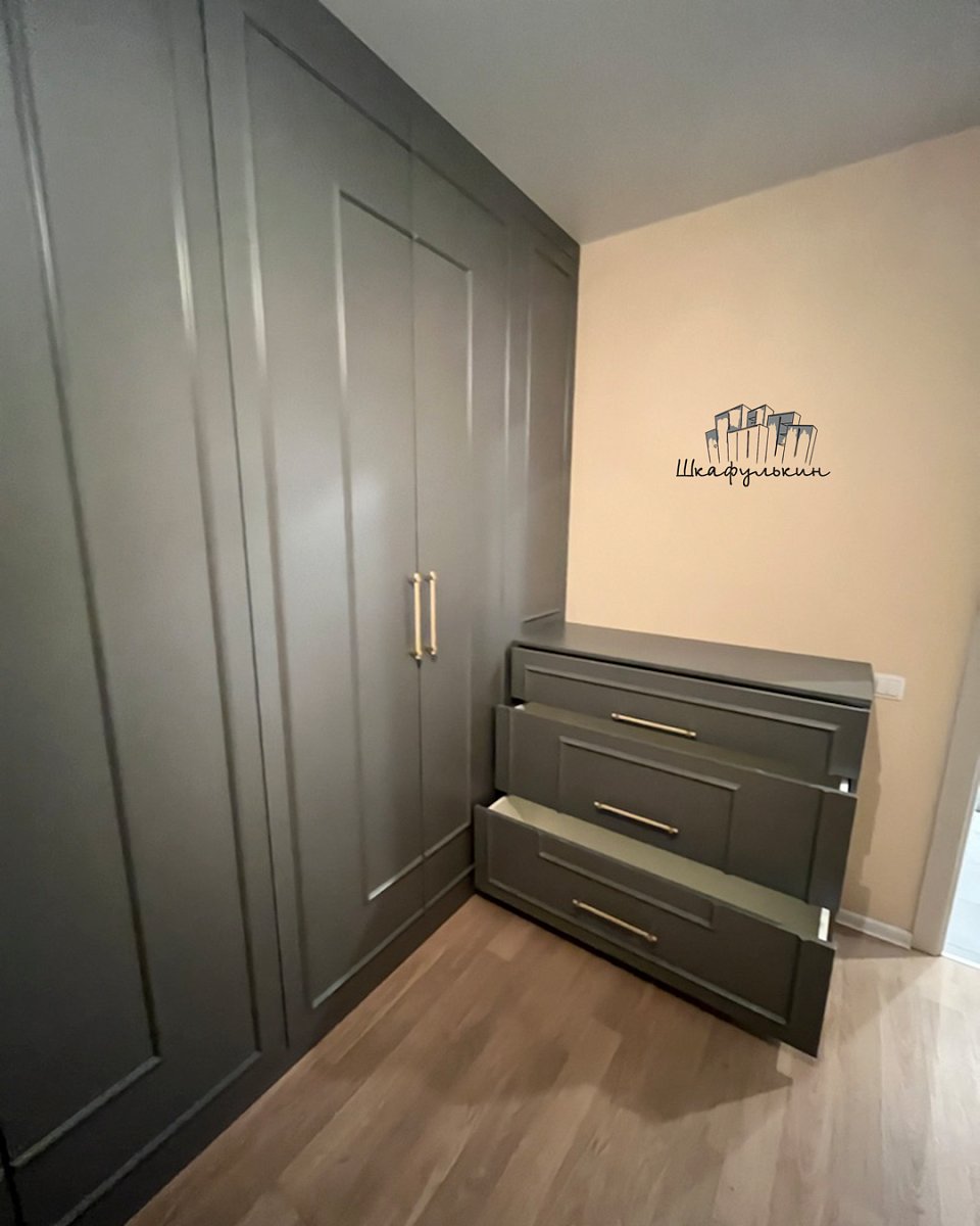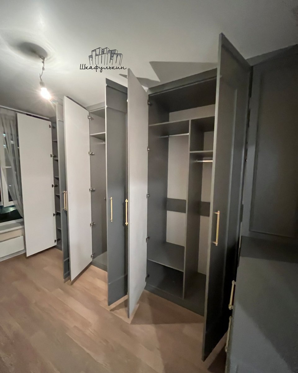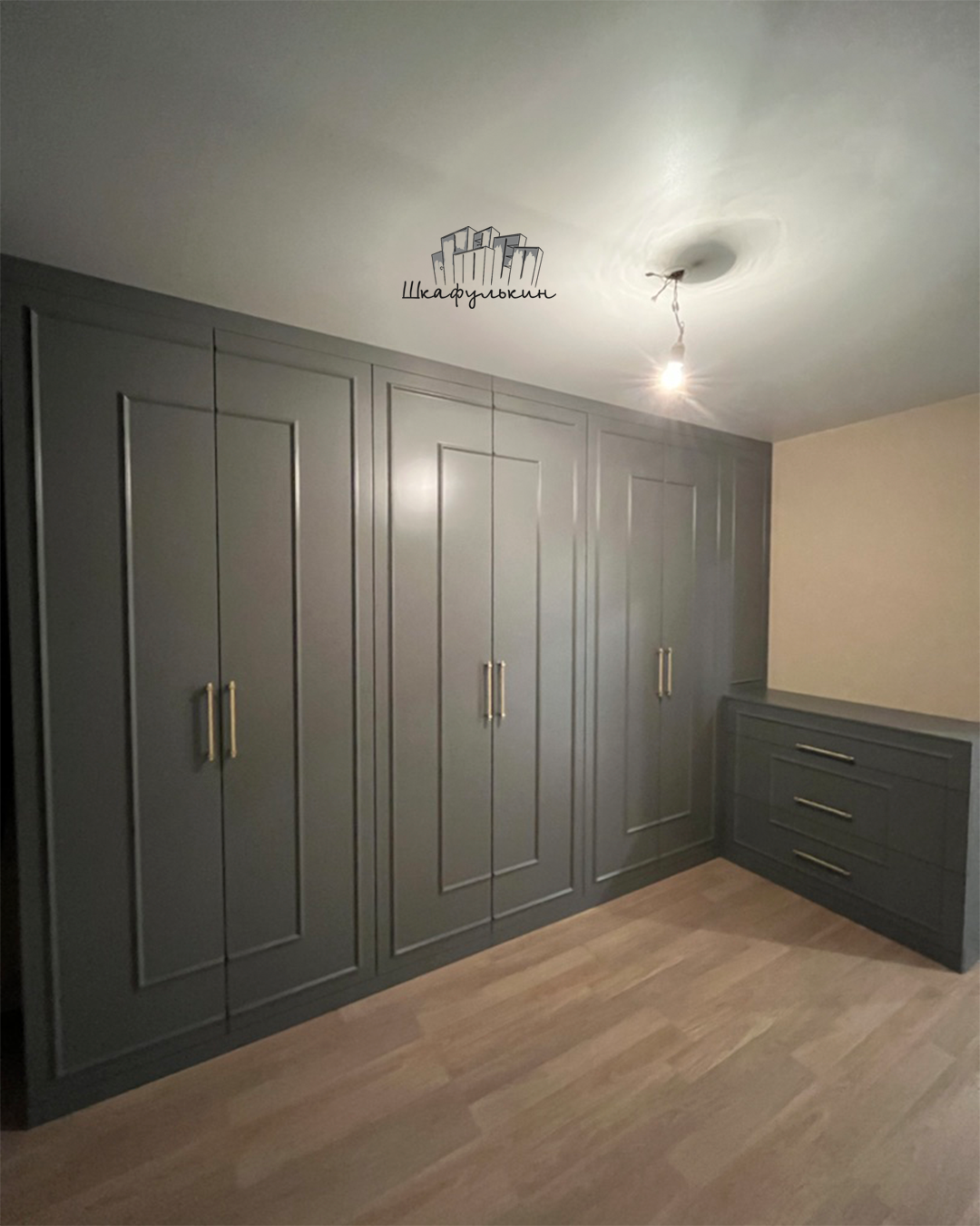 Фасад распашной: 6 шт. / МДФ 19мм / молдинг / покраска: RAL 7037.