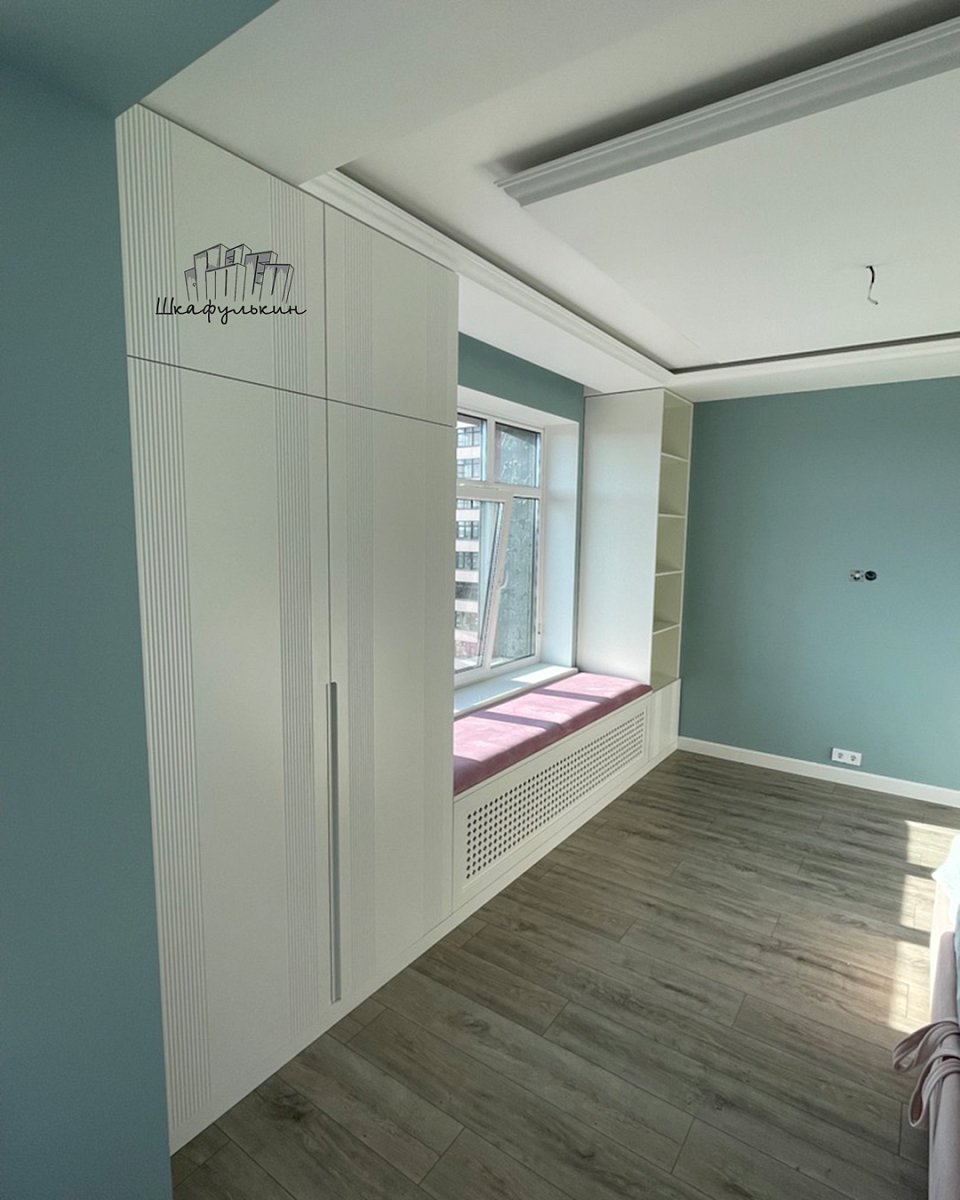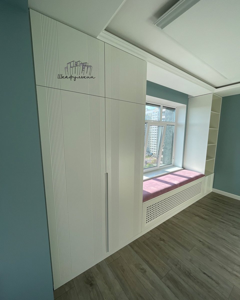 Фасад распашной: 3 шт. / МДФ 19мм / плоский / покраска: RAL 9016 односторонняя матовая.