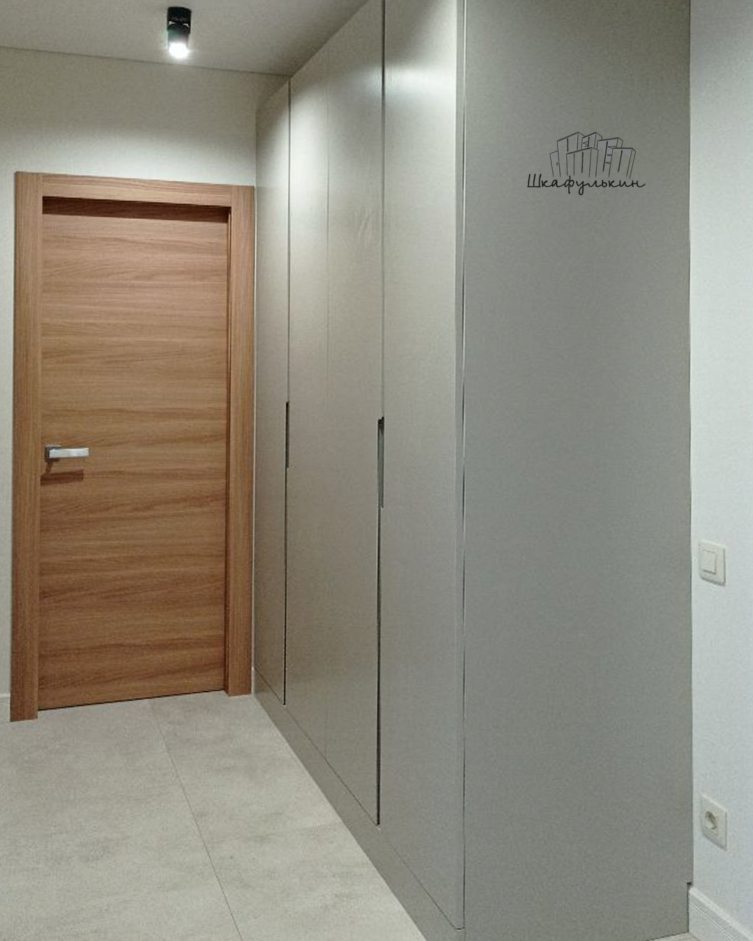 Фасад распашной: 4 шт. / МДФ 19мм / покраска: RAL 7044 односторонняя матовая / ручка интегрированная: RAL 7030.