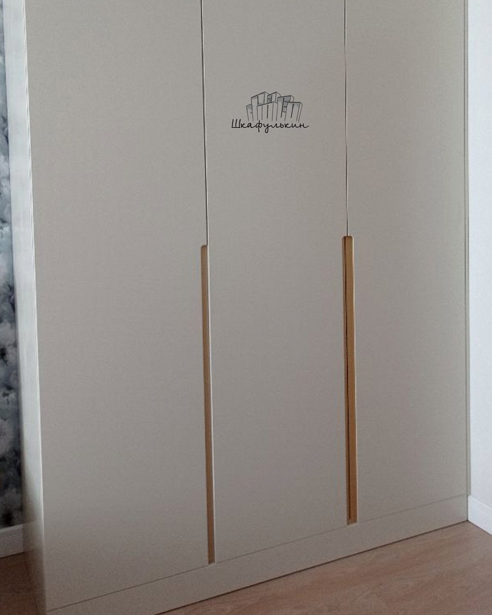 Фасад распашной: 3 шт. / МДФ 19мм / покраска: RAL 1013 односторонняя матовая / ручка интегрированная: RAL 1001.