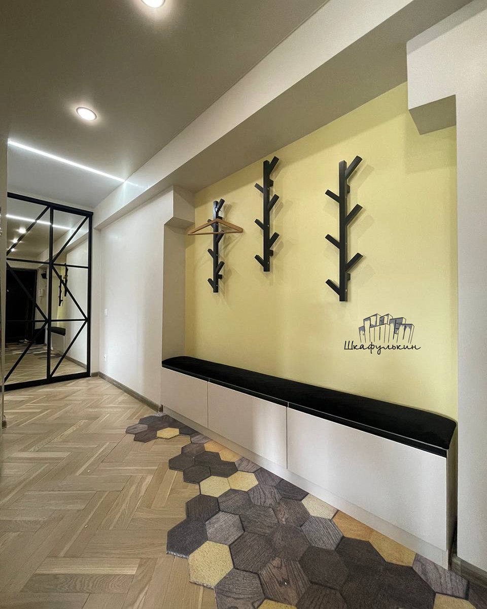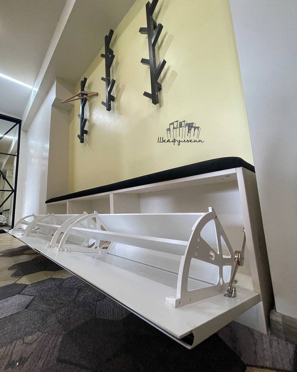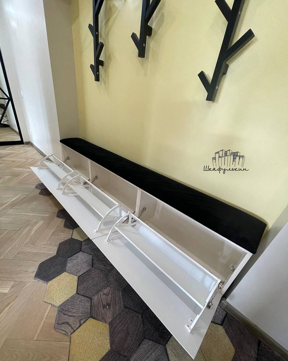 Фасад откидной вниз: 3 шт. / МДФ 19мм / покраска: RAL 9001 односторонняя матовая / ручка интегрированная: RAL 9004.