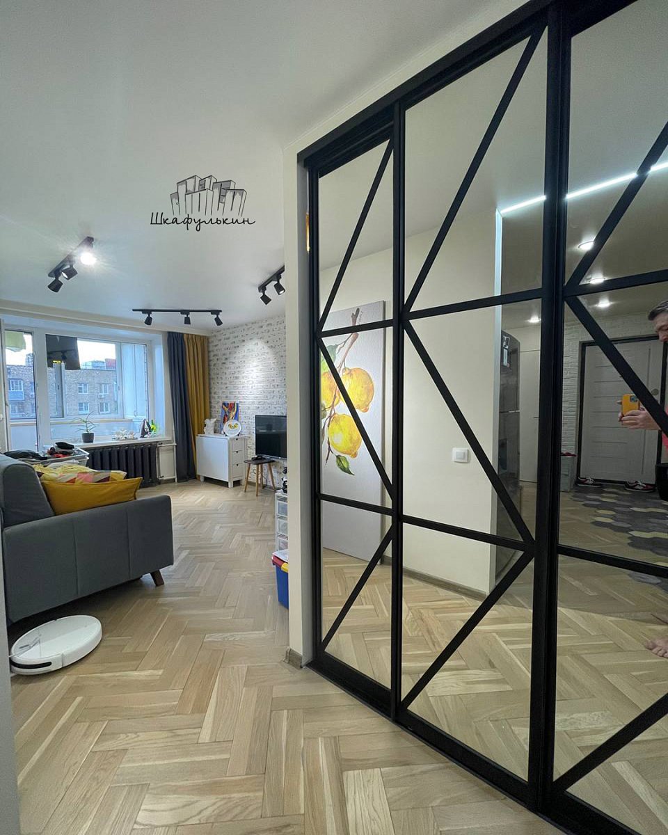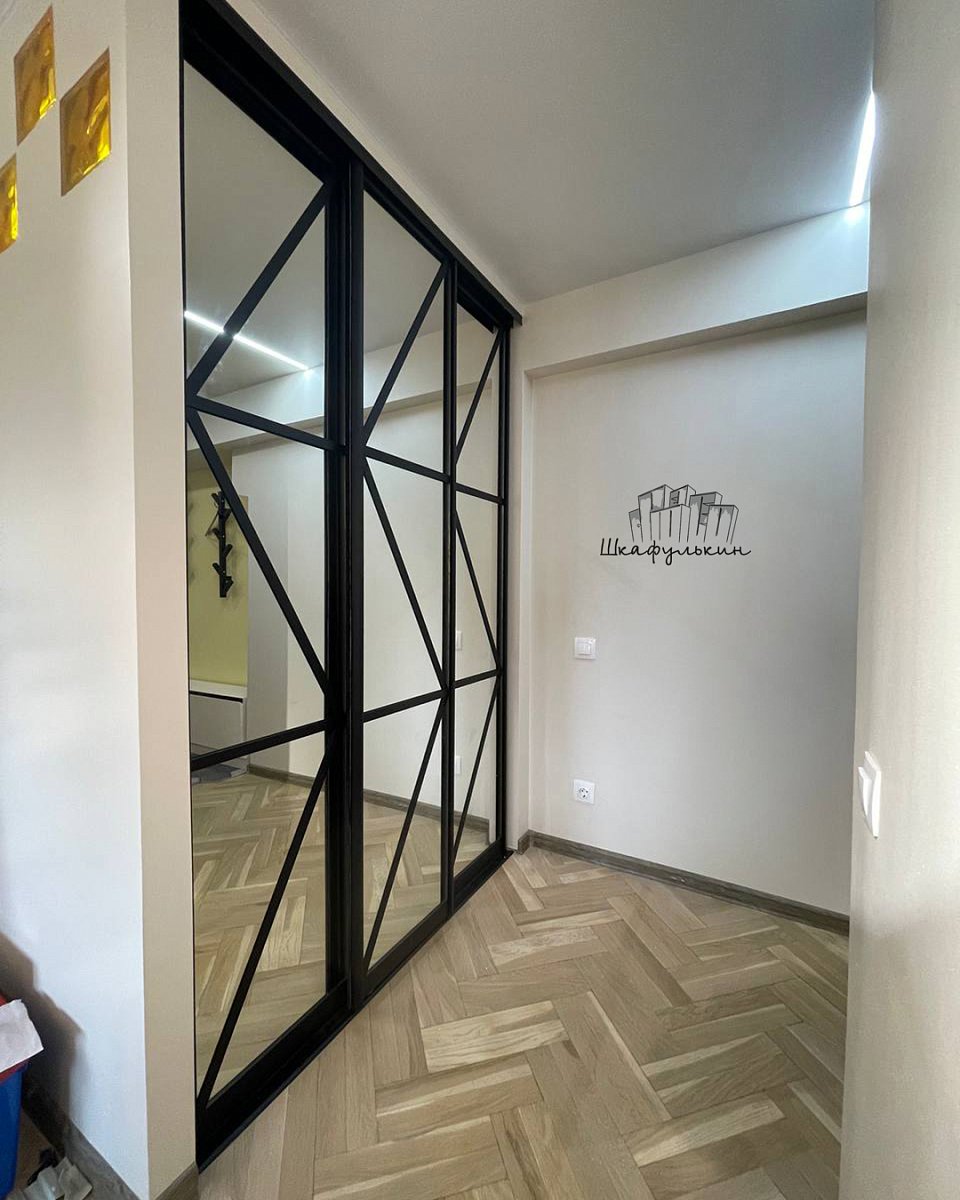 Двери-купе: 3 шт. / ITALUM CLASSIC-A, декор: Чёрный матовый / вставка : зеркало серебро.