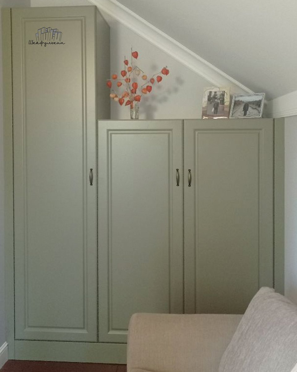 Фасад распашной: 3 шт. / МДФ 19мм / объемный / покраска: NCS S 5010 G90Y односторонняя матовая.