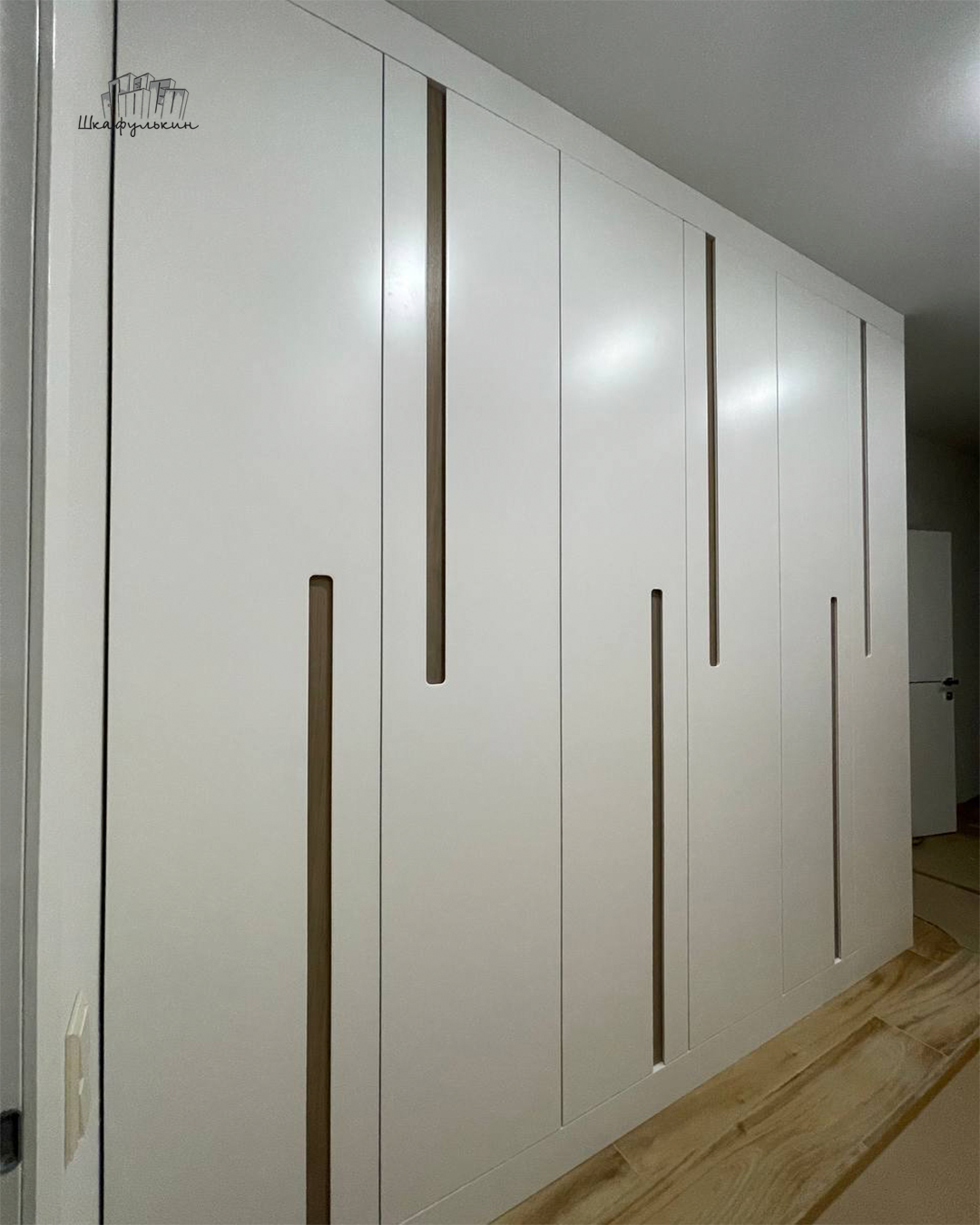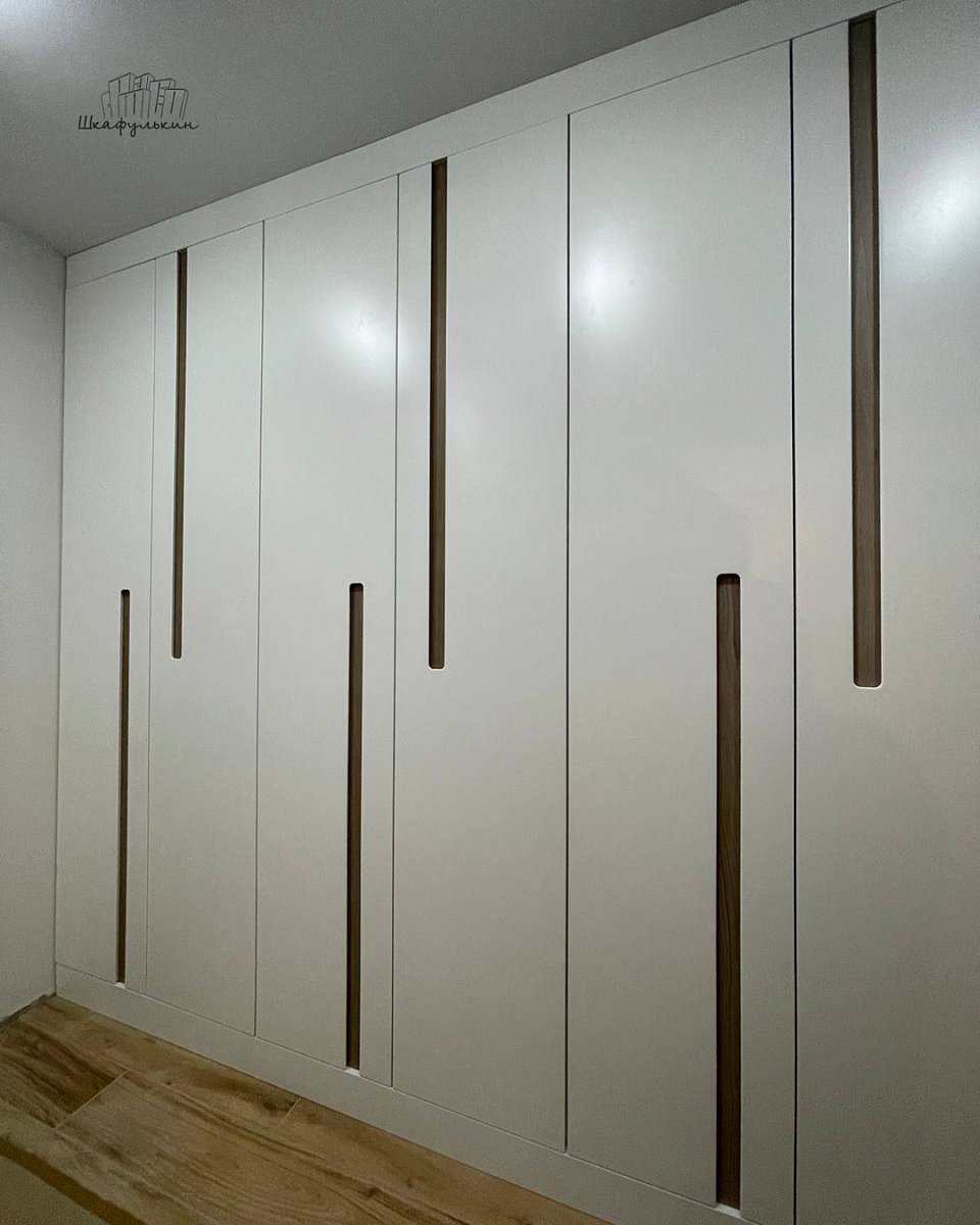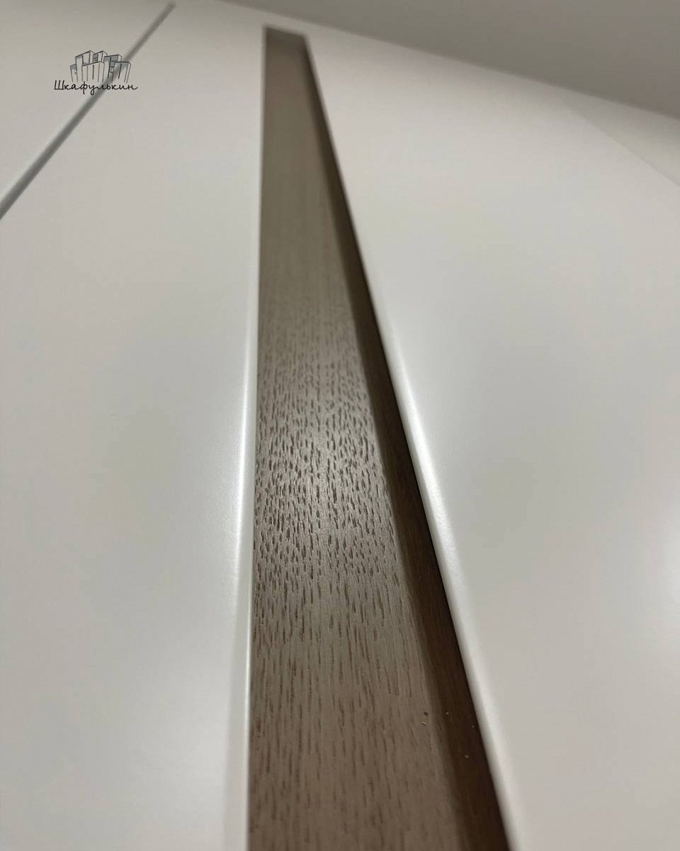 Фасад распашной: 6 шт. / МДФ 19мм / покраска: RAL 9003 односторонняя матовая / ручка интегрированная шпон, морилка ELM010.