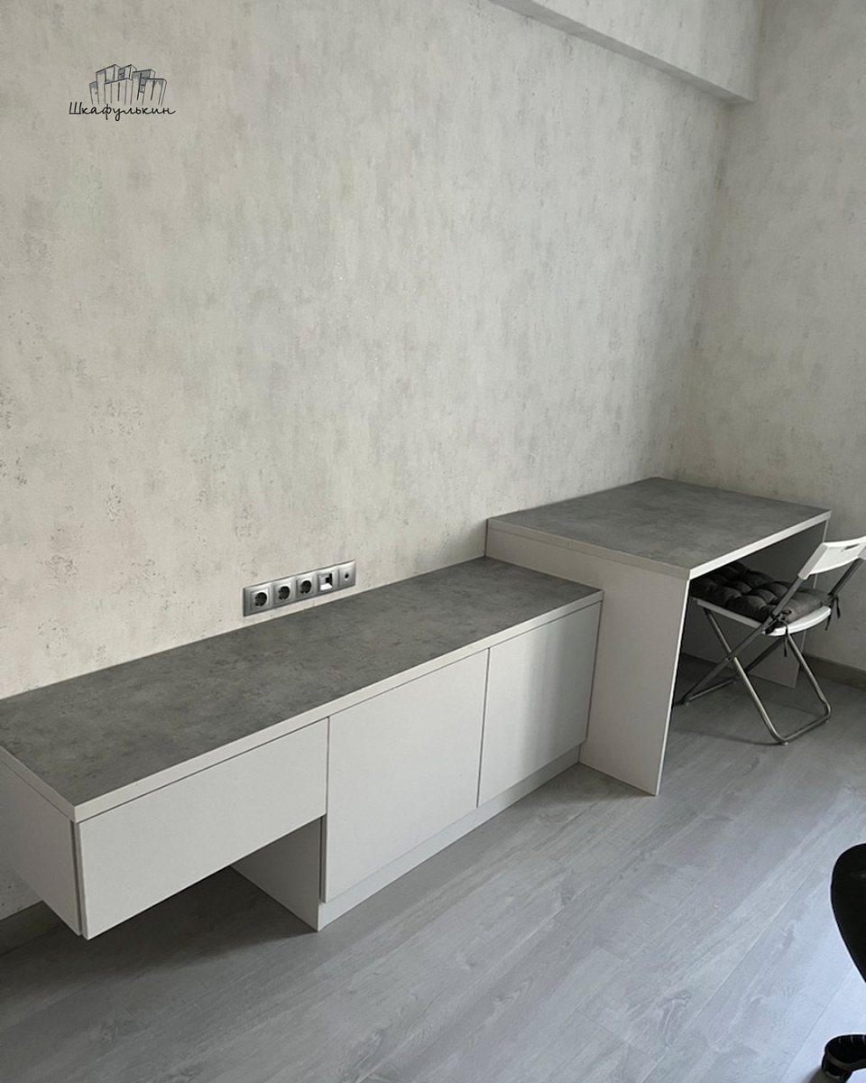 Материал корпуса: ЛДСП F186 32мм Бетон Чикаго светло-серый ST9(склад)/столешницы, кромка U707 ST9 шелксерый,вырез под провода768х25.