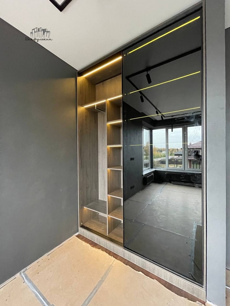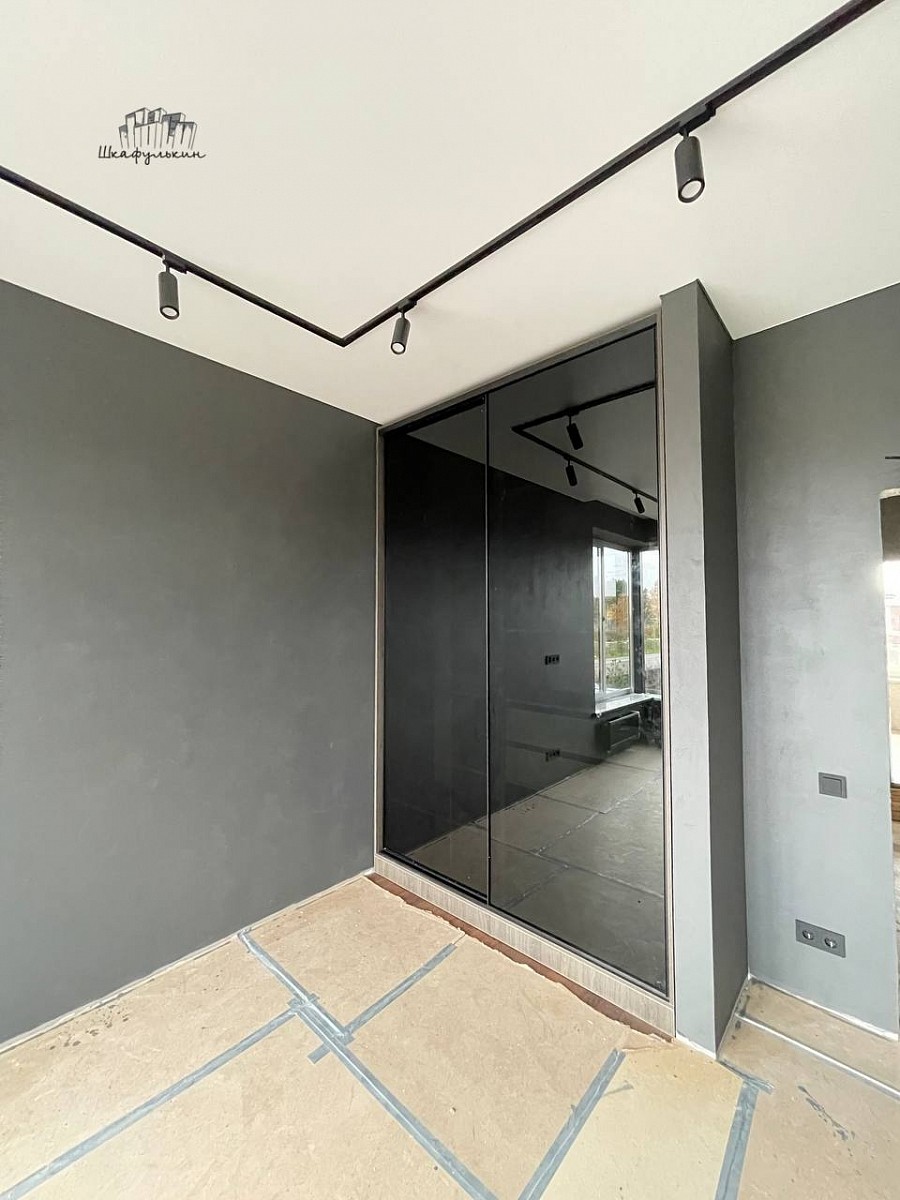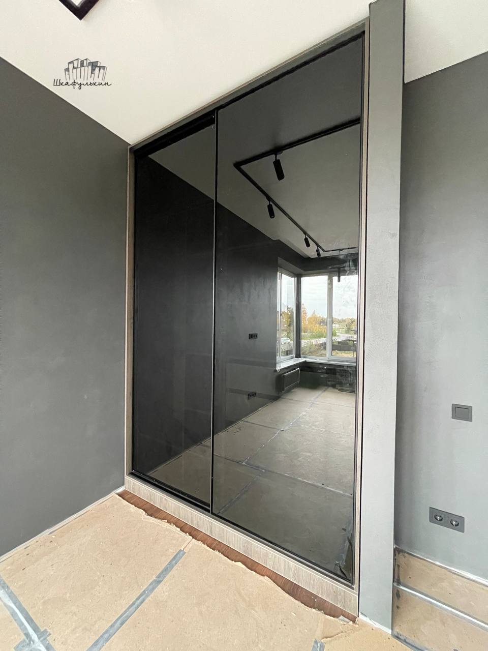 Двери-купе: 2 шт. / MODUS MS 164, декор: Черный браш A25 / вставка: стекло Темно-серое / треки: Черный браш A25.