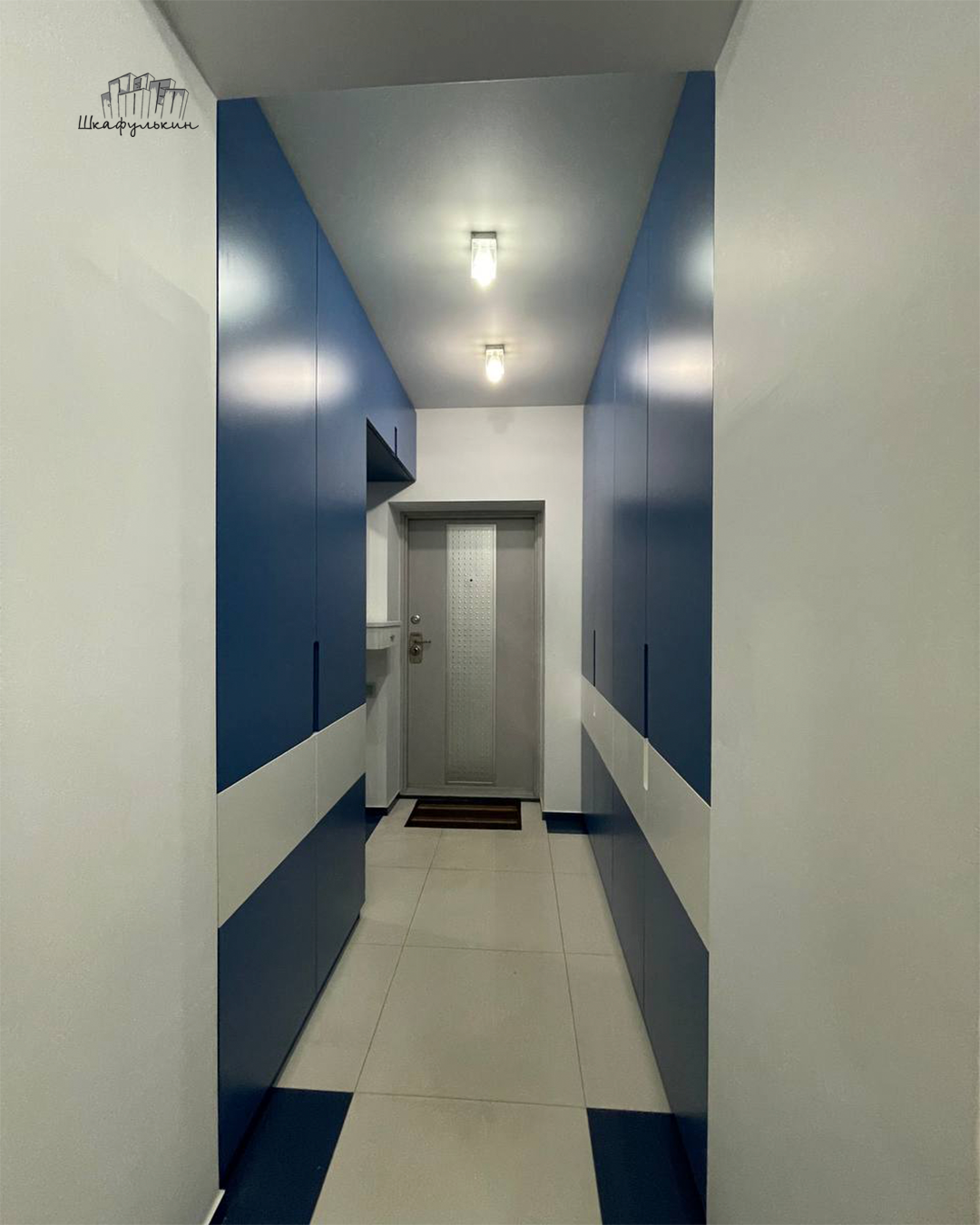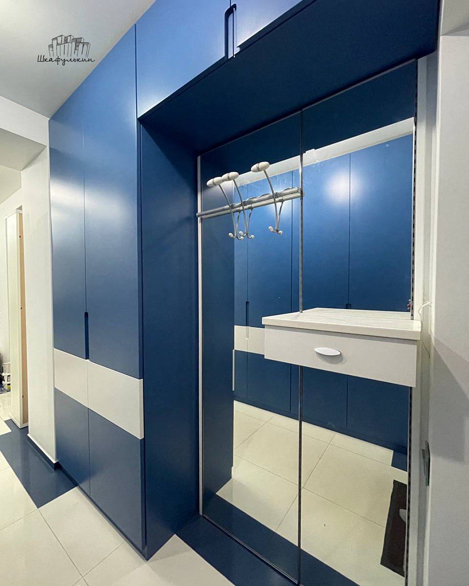 Фасад распашной: 4 шт. / МДФ 19мм / покраска: RAL 9016+5007 односторонняя матовая / ручка интегрированная (арт. i001): RAL 9016.