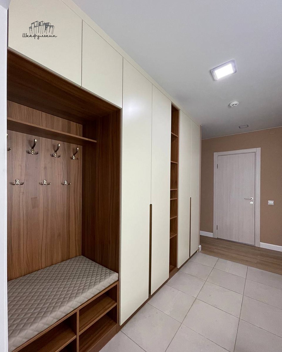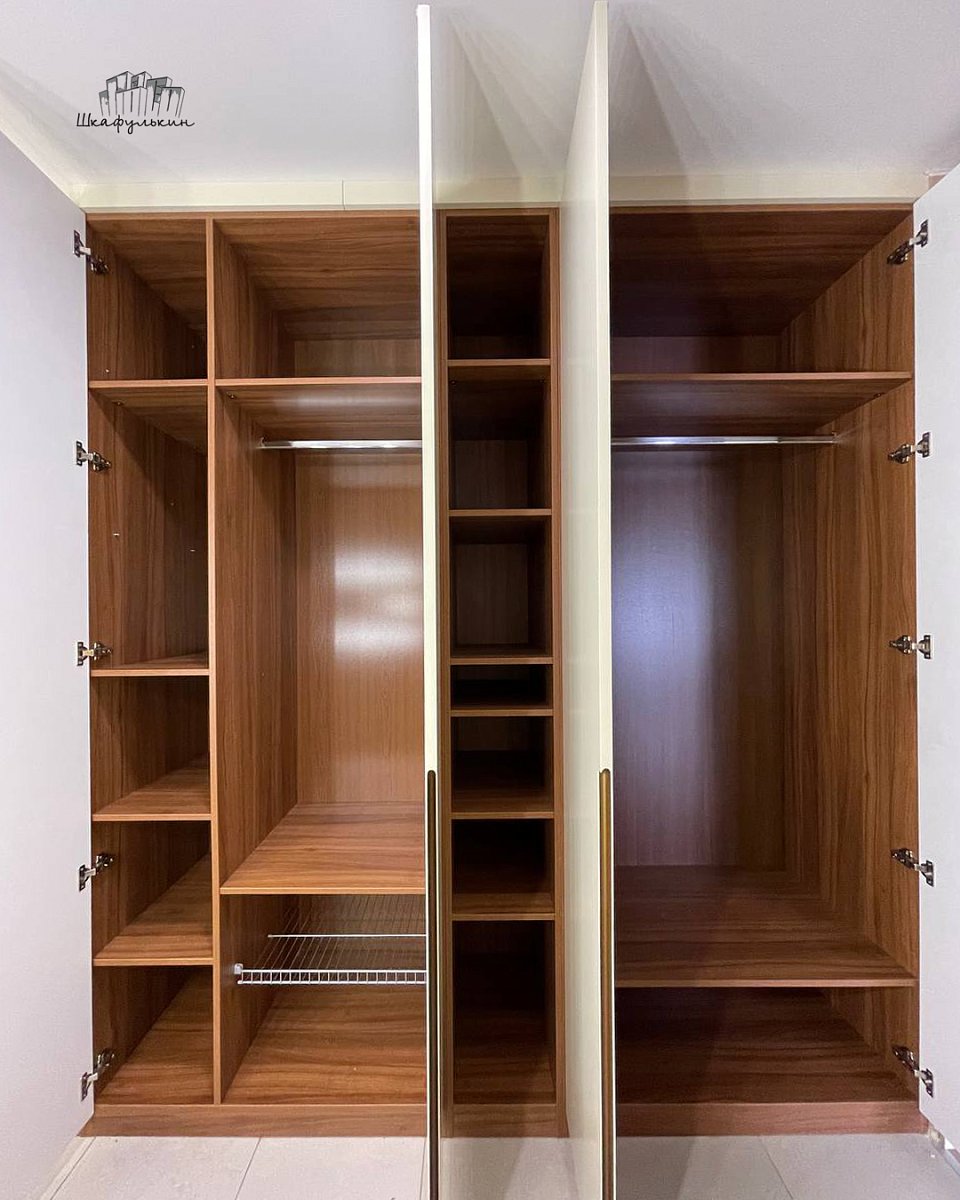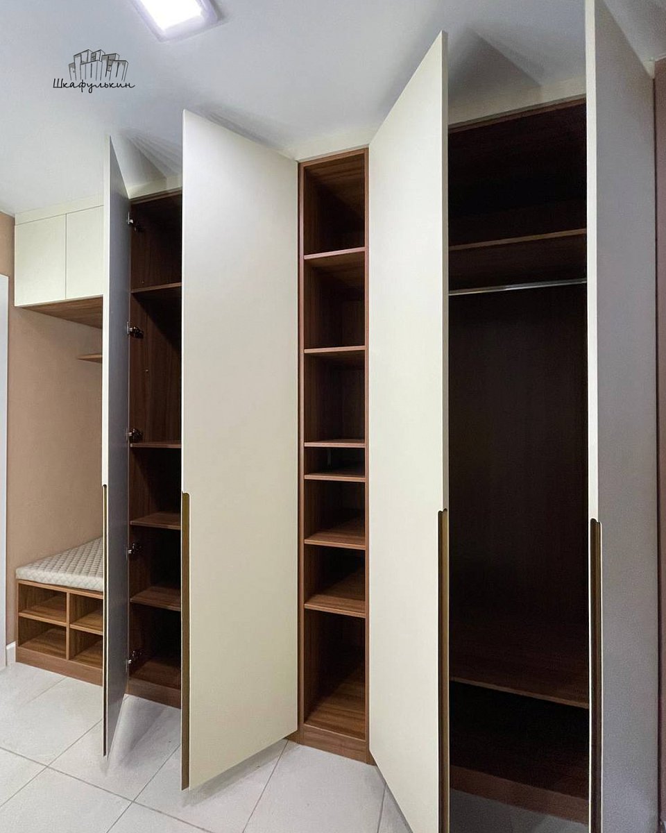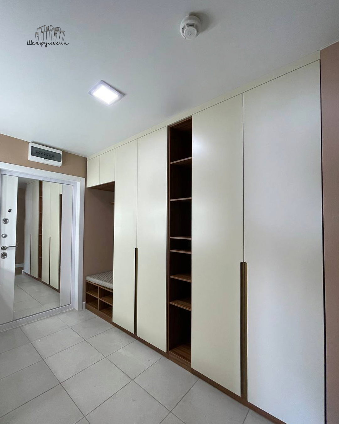 Фасад распашной: 4 шт. / МДФ 19мм / покраска: RAL 1013 односторонняя матовая / ручка интегрированная.